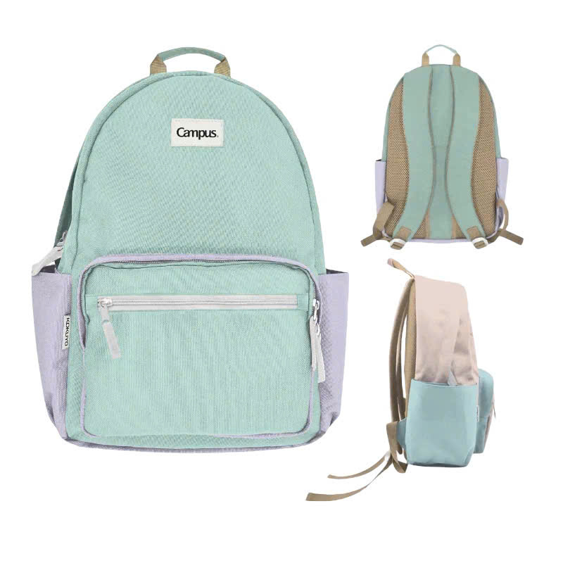 Balo học sinh Campus được làm từ vải Polyester an toàn, chống thấm nước, không độc hại, không có mùi hôi, dễ lau chùi. Quai đeo chữ S giúp phân bổ trọng lượng đều tới vai, ngực và lưng, chịu lực tốt, cho thời gian sử dụng lâu dài. Chất liệu vải khá nhẹ, ít bám bẩn, đặc biệt là hạn chế phai màu, giúp balo luôn mới.