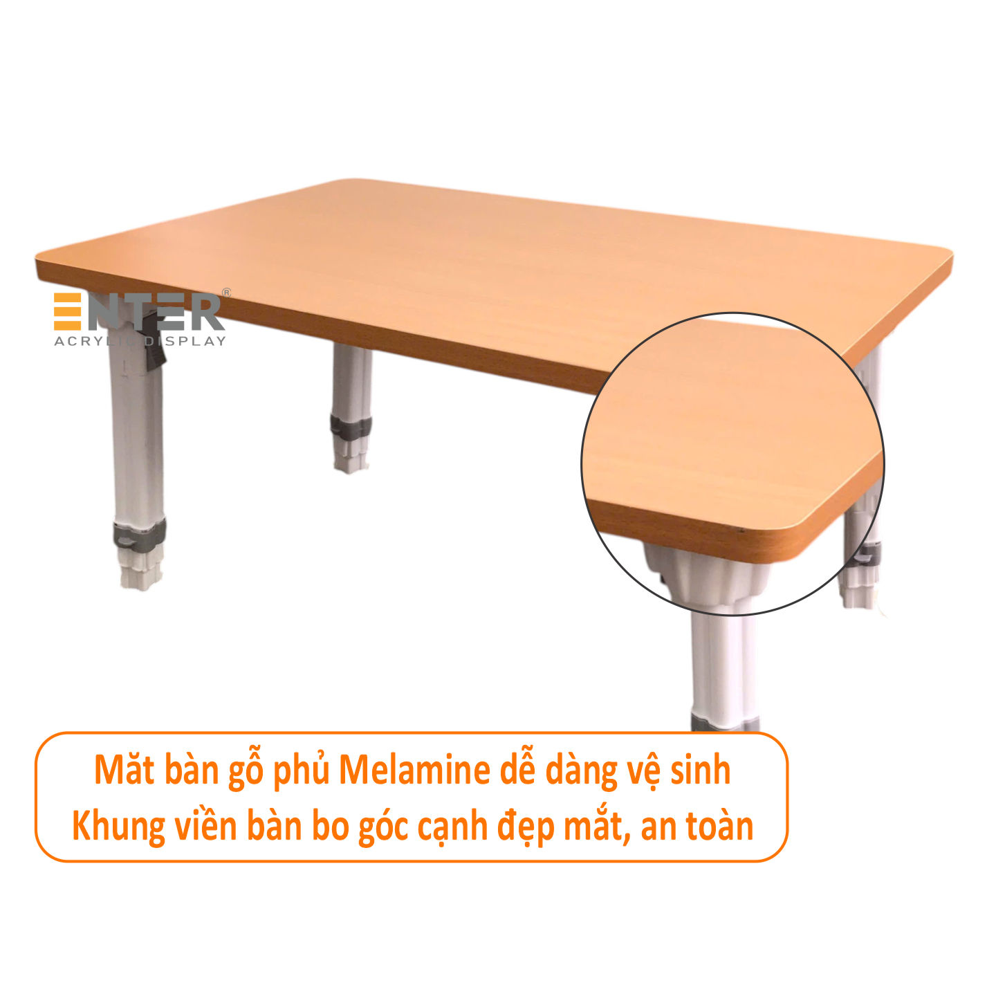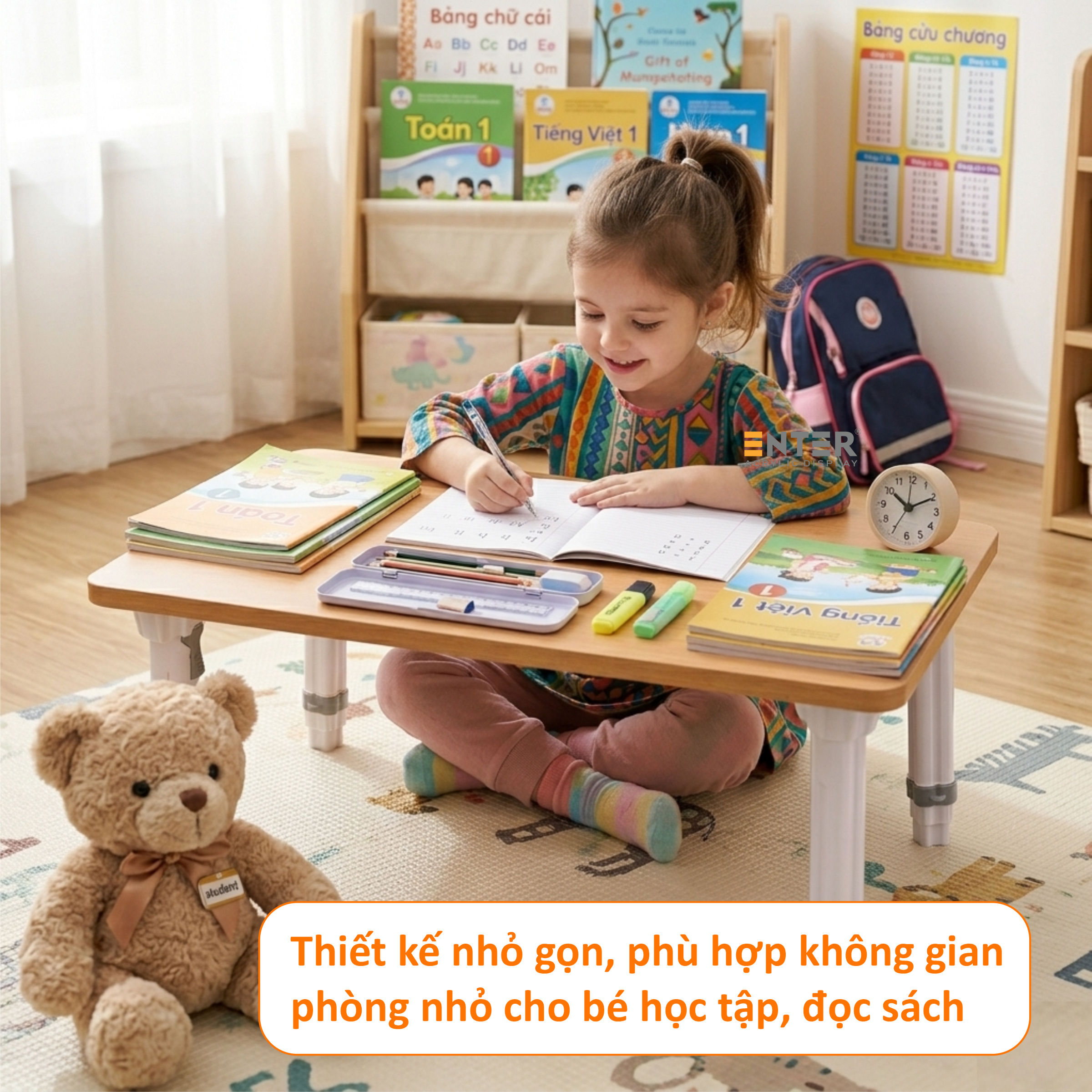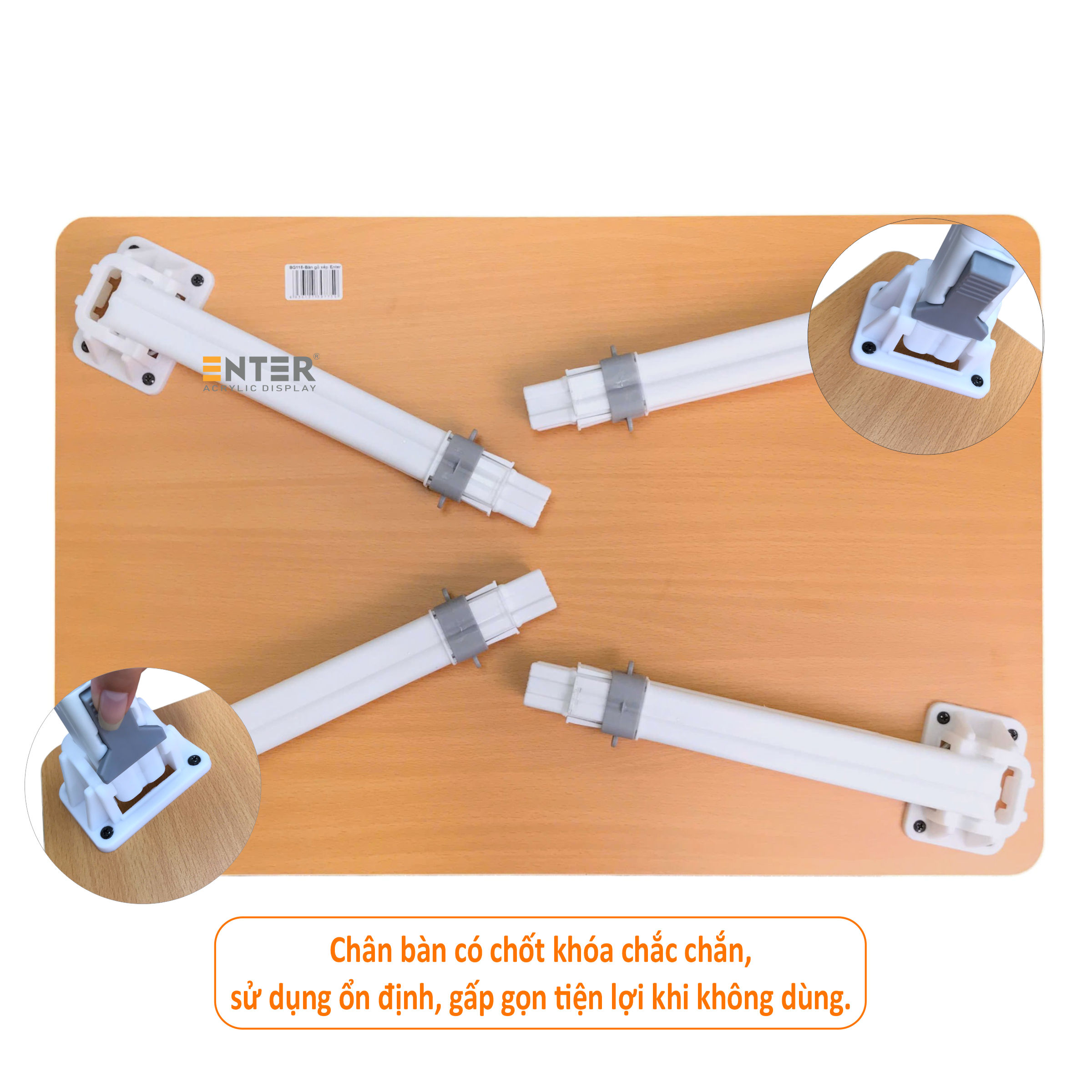 Bàn gỗ xếp Enter BG116 có thiết kế đơn giản với tone màu đẹp mắt, phù hợp nhiều nhu cầu sử dụng như bàn học, bàn ăn, bàn làm việc… Chân bàn có thể điều chỉnh độ cao linh hoạt, phù hợp cho cả người lớn và trẻ em, tiện dùng trong nhiều không gian, mục đích khác nhau.
