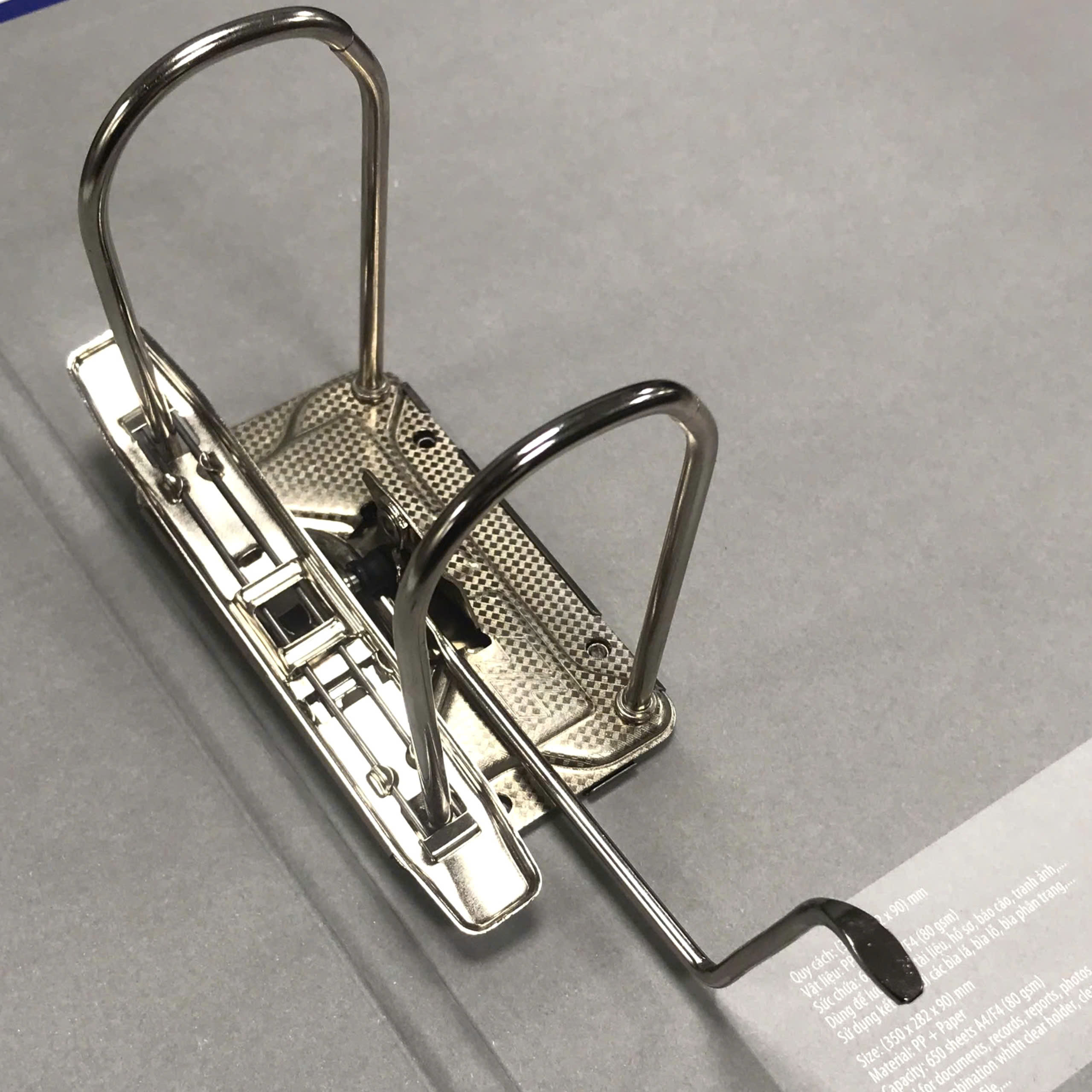Được chế tác từ carton cứng cao cấp bọc Simili, bìa mang lại độ bền chắc và vẻ ngoài sang trọng. Phần còng sử dụng kim loại phủ niken chống gỉ sét, đảm bảo vận hành trơn tru và độ bền lâu dài.