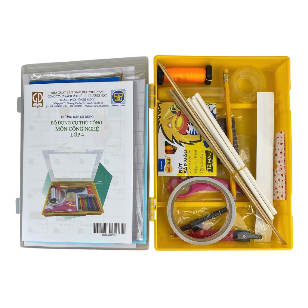 Bộ dụng cụ thủ công môn công nghệ lớp 4 là đồ dùng học tập cần thiết giúp các em học sinh rèn luyện kỹ năng quan sát, tư duy logic và sự khéo léo. Là đồ dùng học tập cho học sinh lớp 4 bổ trợ cho phân môn công nghệ.
