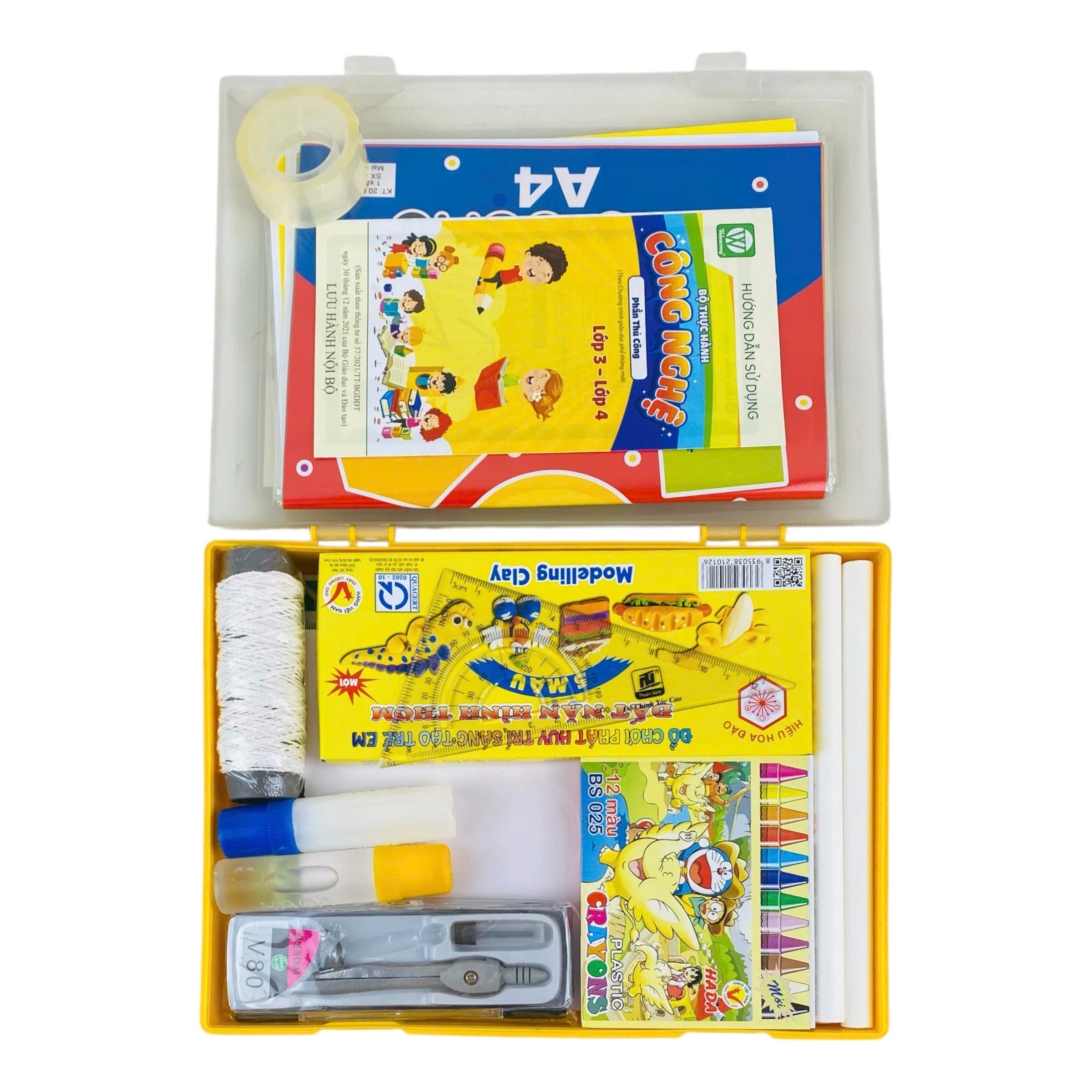 Bộ Thực Hành Công Nghệ lớp 3 – lớp 4 được sản xuất theo Thông tư 37 của Bộ Giáo Dục & Đào tạo, dành riêng cho học sinh tiểu học. Hiểu rõ những khó khăn mà các em thường gặp trong quá trình học và chuẩn bị nguyên vật liệu, công ty chúng tôi đã nghiên cứu và thiết kế bộ dụng cụ thực hành đầy đủ, tiện lợi và an toàn. Sản phẩm được kết hợp từ nhiều vật dụng cần thiết, áp dụng cho chương trình Công nghệ – phần thủ công của cả lớp 3 và lớp 4, đồng thời phù hợp với cả 3 bộ sách hiện hành: Chân trời sáng tạo, Kết nối tri thức và Cánh diều. Với nhiều năm kinh nghiệm trong lĩnh vực giáo dục, chúng tôi luôn chú trọng sự an toàn, tính tiết kiệm và khả năng hỗ trợ phát huy sáng tạo cho học sinh, mang đến công cụ học tập hữu ích và hiệu quả cho cả thầy cô và phụ huynh.