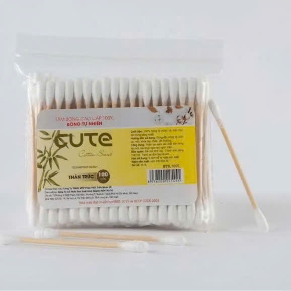 Bông ráy tai có thân làm từ trúc, chắc chắn và thân thiện với môi trường. Phần đầu bông bằng cotton mềm, quấn chặt nên không dễ bung, an toàn và êm ái khi sử dụng.