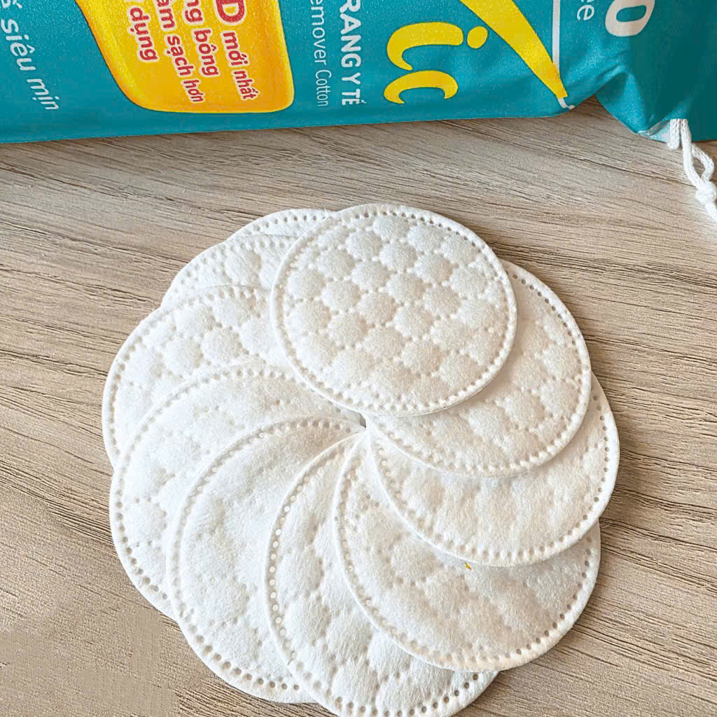Bông tẩy trang là sản phẩm chăm sóc da đa năng, giúp làm sạch lớp trang điểm, bụi bẩn và dầu thừa một cách nhẹ nhàng khi kết hợp với nước hoặc dầu tẩy trang. Ngoài công dụng làm sạch, bông tẩy trang còn hỗ trợ thấm toner, lotion để dưỡng ẩm và cân bằng da, đồng thời có thể dùng làm lotion mask hoặc chườm dịu da khi cần. Sản phẩm cũng tiện lợi cho việc lau sạch sơn móng tay và chăm sóc móng, mang lại trải nghiệm chăm sóc cá nhân hiệu quả và gọn gàng.