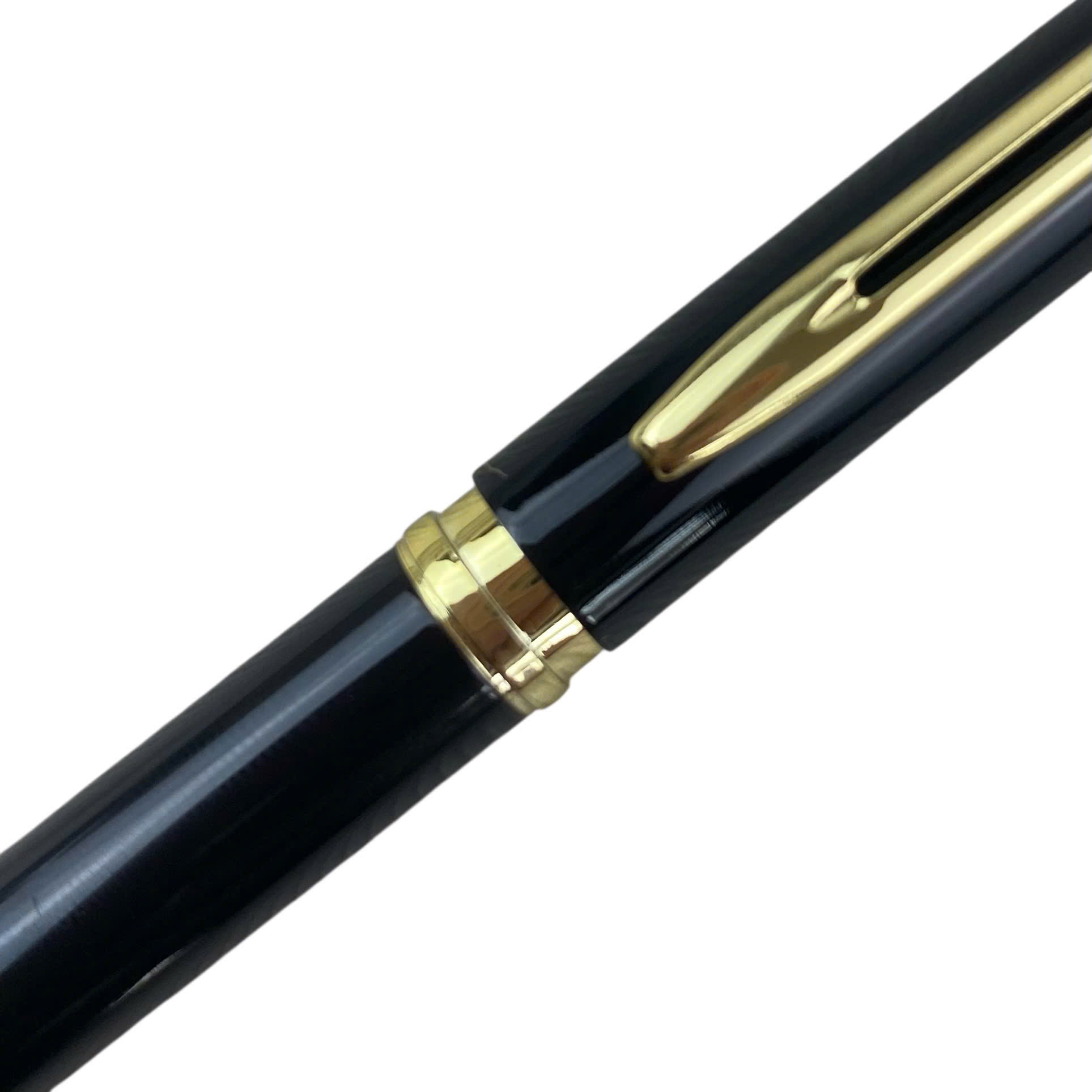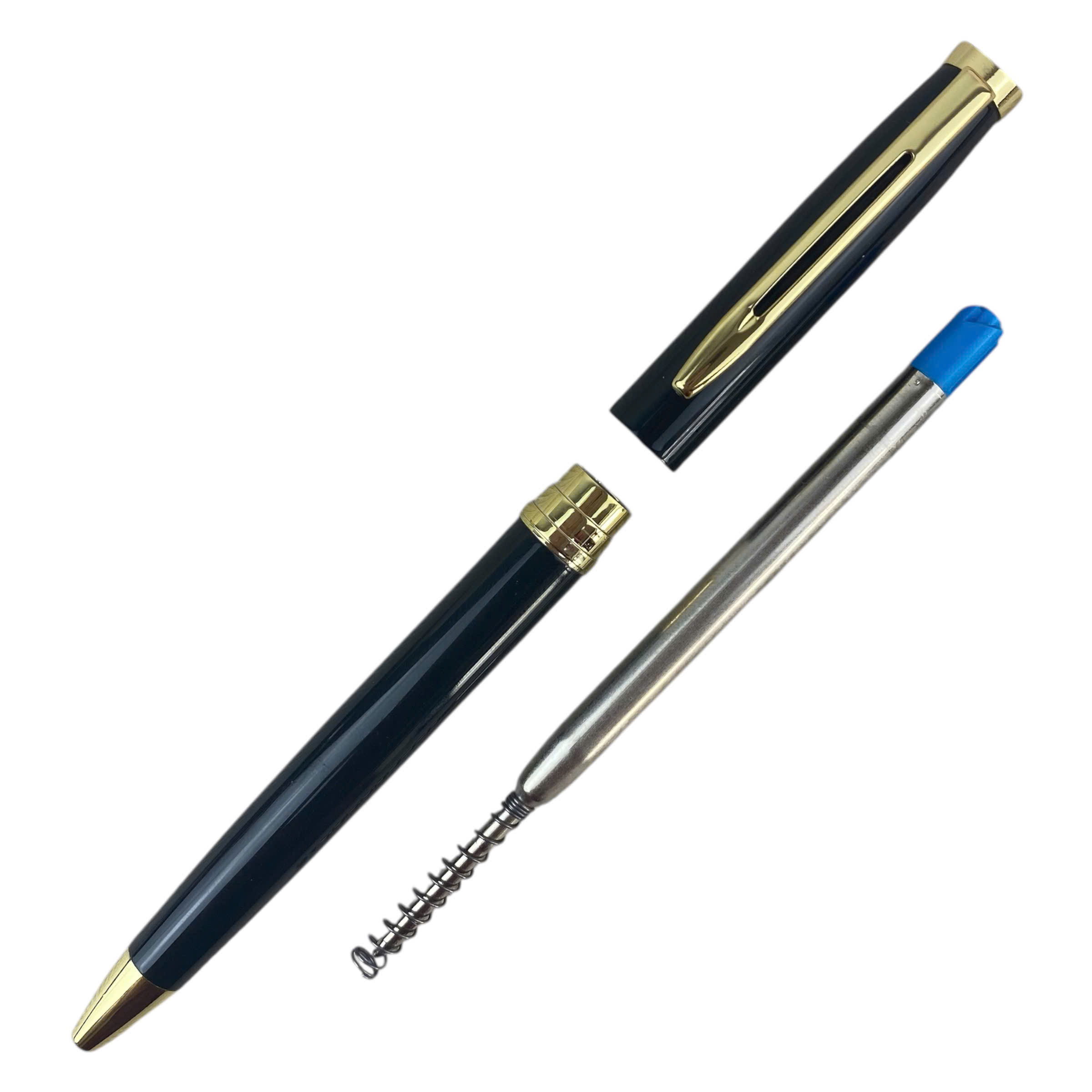 Bút bi cox được làm bằng inox, phủ sơn sáng bóng, sang trọng và đẹp mắt. Bút có tone màu đen cơ bản, ngoài ra các chi tiết như đầu, đai và giắt bút được mạ vàng một cách tinh tế tạo nên điểm nhấn độc đáo cho sản phẩm. Thân bút thiết kế thon dài, gọn nhẹ tạo cảm giác cầm nắm dễ chịu, xoay vặn ngòi bút dễ dàng thuận tiện sử dụng.