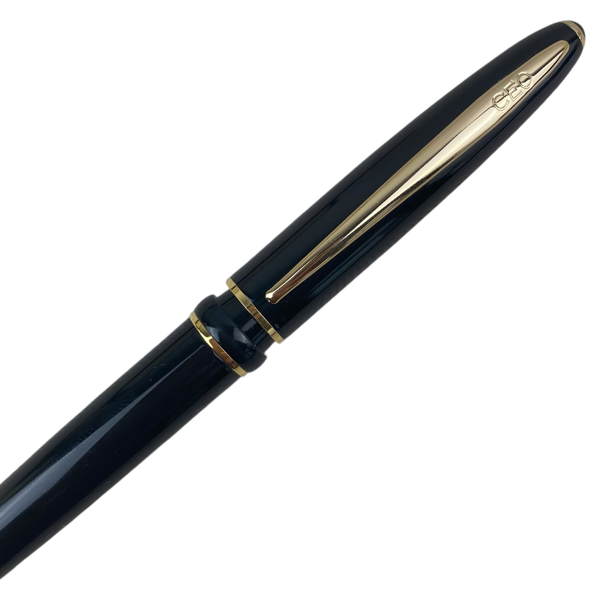 Được làm bằng inox sơn đen bóng, mạ vàng sáng bóng trên ngòi, đai và thanh cài của bút, phía dưới thanh cài được khắc teeh thương hiệu CEO để tạo nên điểm nhấn độc đáo, thân bút xoay dễ dàng vặn ngòi bút ra.