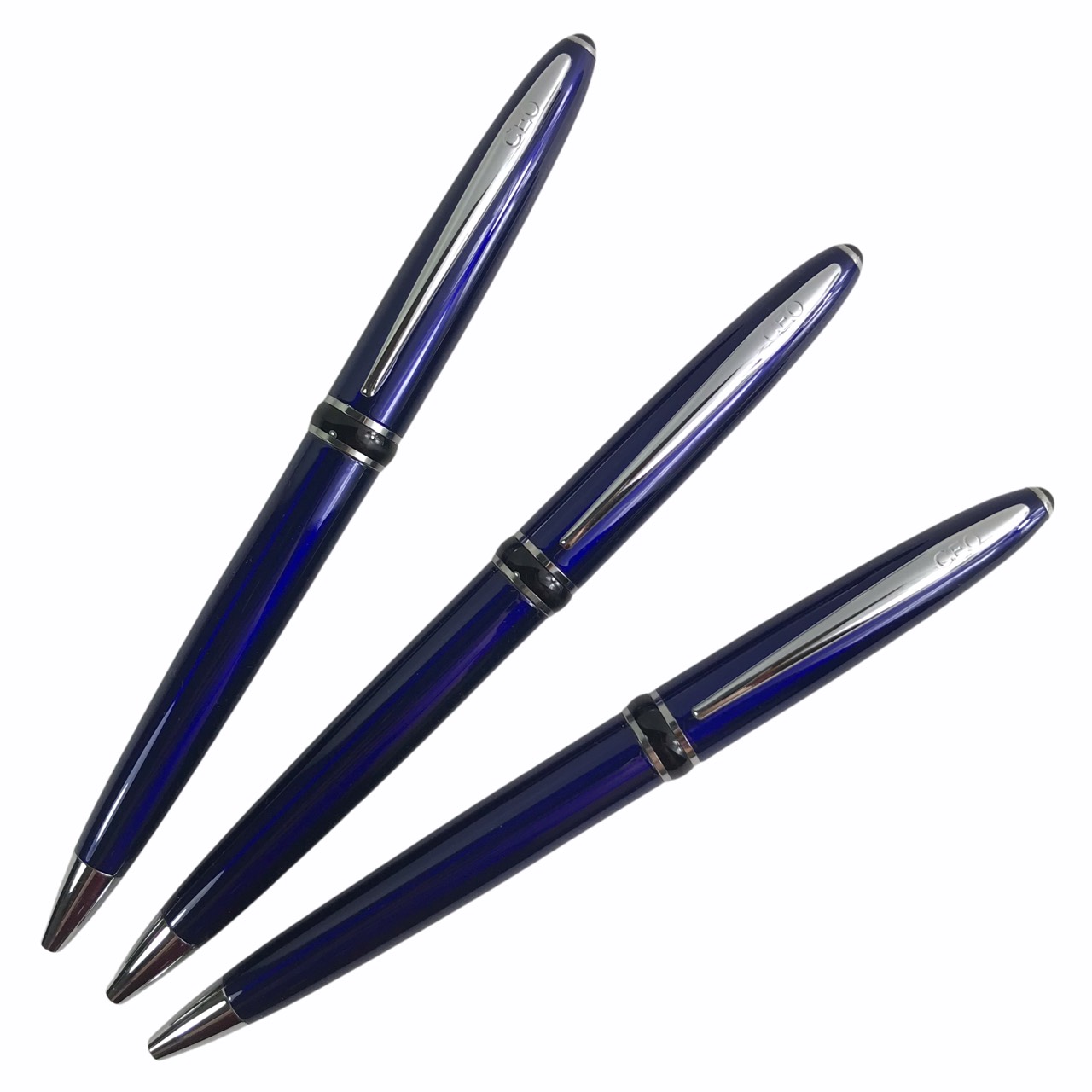 Được làm bằng inox sơn xanh dương, mạ viền đen trên đai, mạ bạc sáng bóng trên ngòi và thanh cài, phần trên thân của thân cài được khắc tên thương hiệu CEO để tạo nên điểm nhấn độc đáo, thân bút xoay dễ dàng vặn ngòi bút ra.