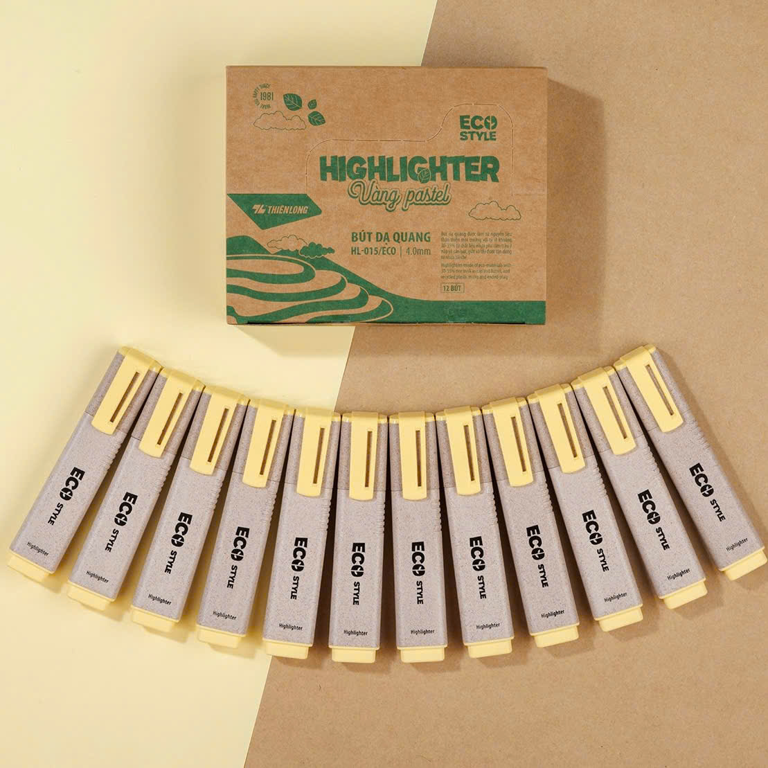 Vỏ bút được làm từ vật liệu 30-35% vỏ cám trấu thân thiện với môi trường. Ngoại hình sản phẩm được thiết kế gọn nhẹ với phần thân màu trắng, phần nắp cùng màu với màu mực, giúp dễ phân biệt các màu, tạo cảm giác nhẹ nhàng, cầm nắm tốt. Đầu ngòi bằng sợi Polyethylene cao cấp tạo cảm giác tô, viết êm trơn, ngòi bút vát xéo vừa giúp mực thấm ra đều, mực ra liên tục. Mực cao cấp, chất lượng cao nhanh khô, không lem chữ không làm nhoè nội dung gốc.Thành phần an toàn, màu sắc dịu mát, bắt mắt, không chứa các chẩt độc hại, an toàn cho sức khoẻ người tiêu dùng.