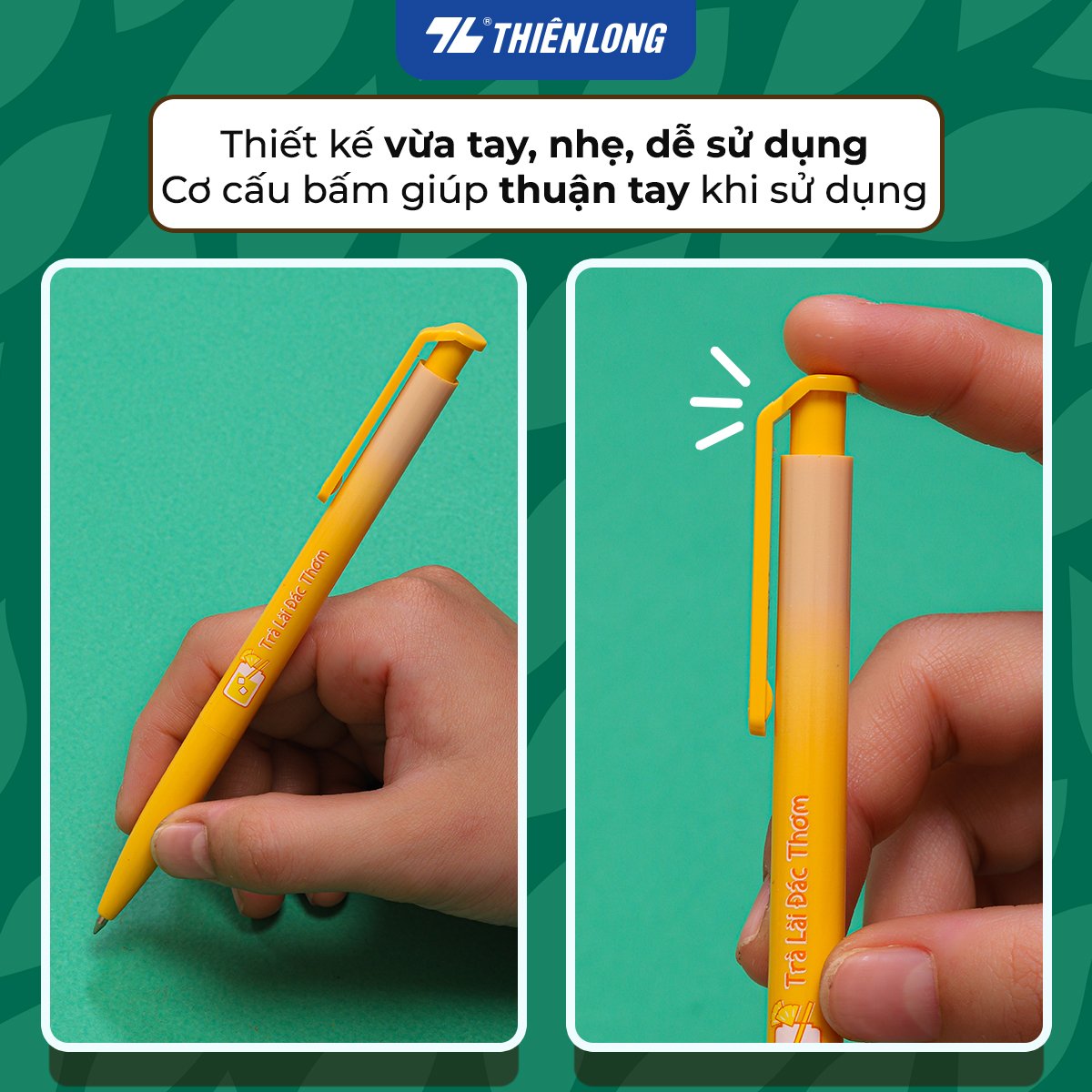 Bút có ngòi 0.5mm, cho nét viết mảnh, nhỏ, mực ra đều, không lem và nhanh khô. Đầu bút êm, viết trơn, nét mực tươi sáng phù hợp cho học sinh, sinh viên dùng để viết, ghi chép...