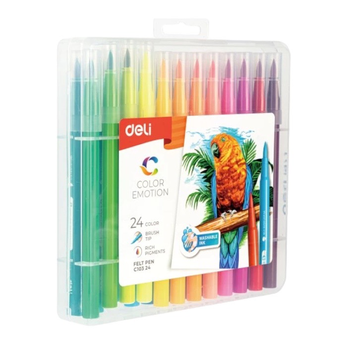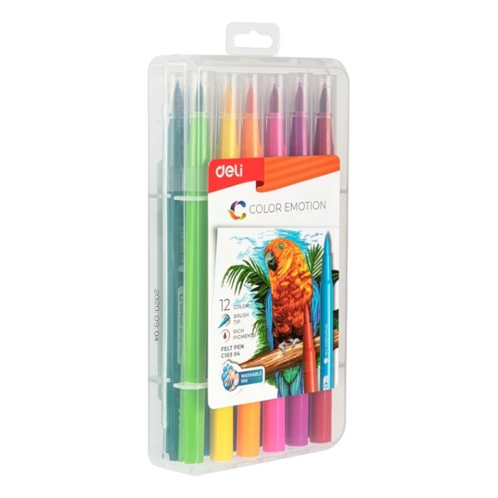 Thân bút được làm từ nhựa có độ bền cao. Nắp đậy kín giúp bảo vệ ngòi bút tốt hơn, đồng thời tránh được việc mực bị khô khi không dùng đến. Đầu bút lông làm bằng sợi Polyester, mềm, lướt êm, mực ra đều và đẹp. Nét mực có độ dày, đậm vừa phải, màu mực tươi sáng, mau khô, không phai và an toàn cho sức khoẻ người sử dụng.
