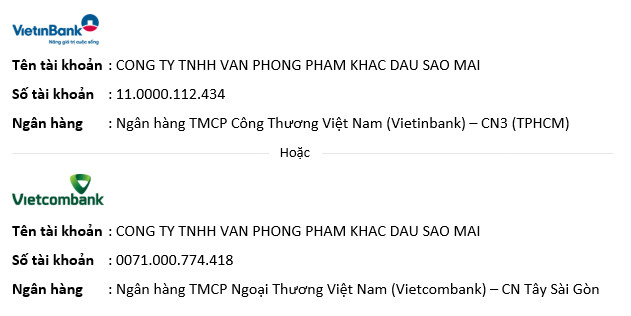 Quý khách chuyển tiền cho chúng tôi vào tài khoản sau đây: