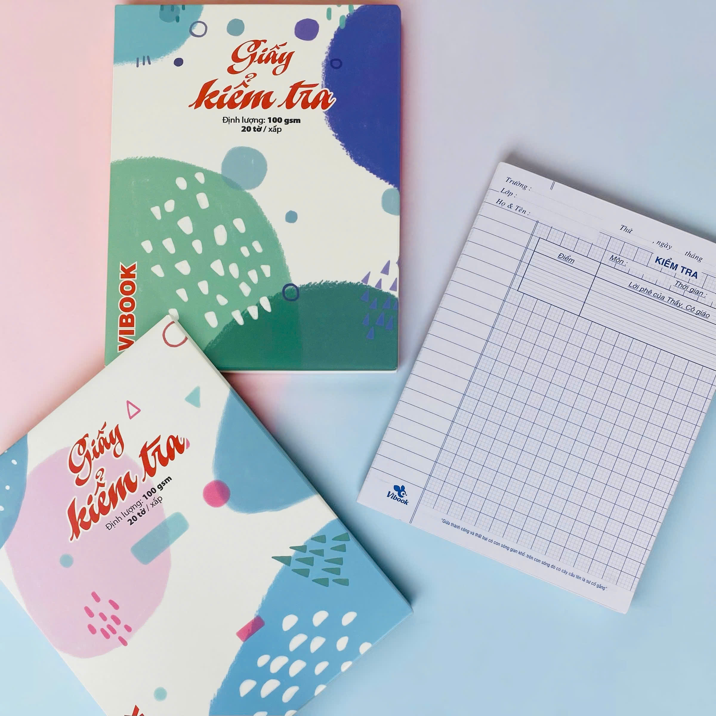 Giấy kiểm tra VT KTH100 4 ô ly được làm từ chất liệu giấy 100gsm cao cấp, dày dặn hơn nên viết rất êm tay, hạn chế lem mực và không bị in hằn sang mặt sau. Bề mặt giấy trắng mịn, an toàn cho mắt, phù hợp cho học sinh sử dụng trong các bài kiểm tra và luyện chữ đẹp.