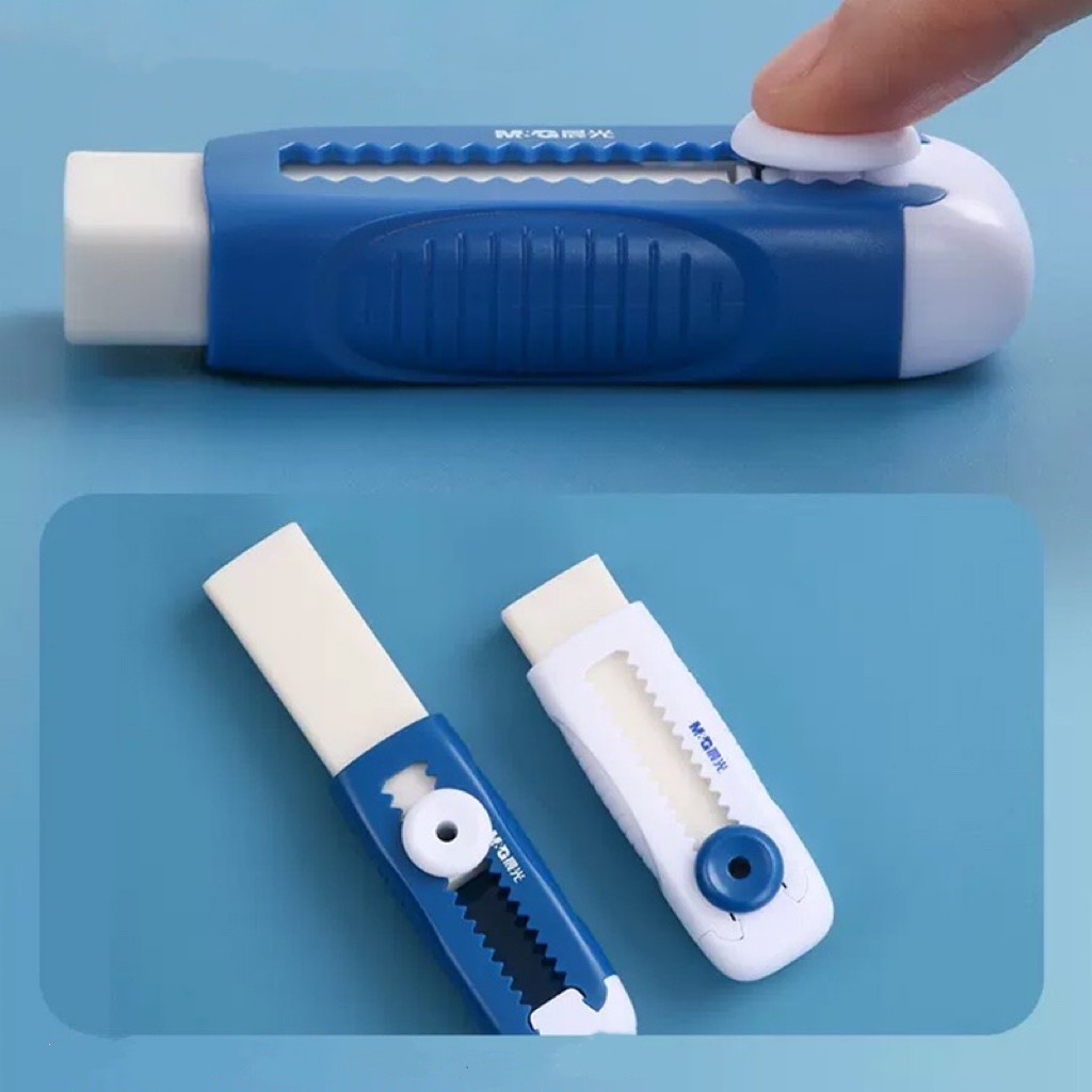 Vỏ gôm được thiết kế như hình chiếc dao rọc giấy lạ mắt, giúp giữ vệ sinh cho lõi gôm và tạo cảm giác cầm nắm tốt, chắc tay. Lõi gôm bên trong bằng cao su tự nhiên, dẻo dai, có độ đàn hồi tốt, có khả năng tẩy sạch tốt.