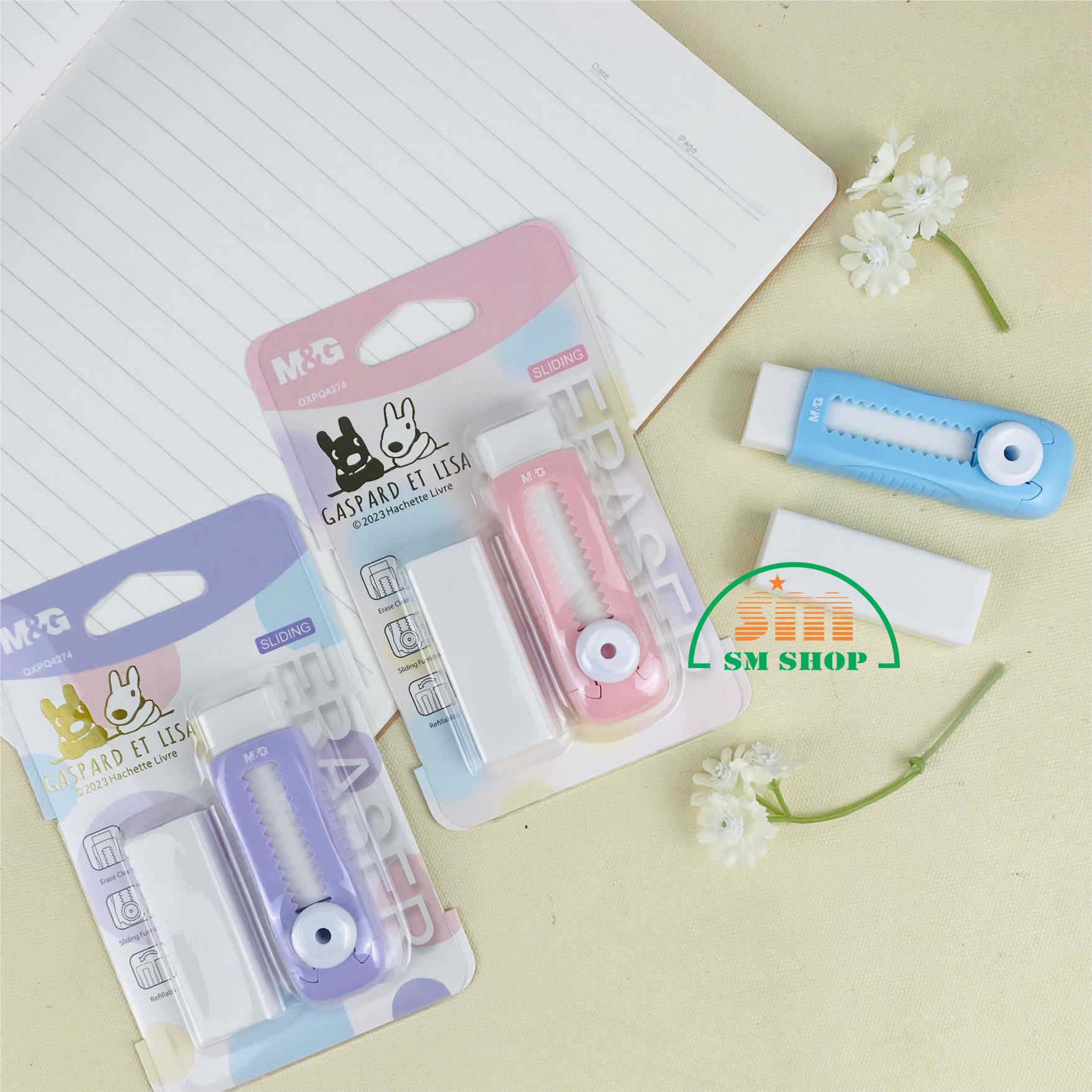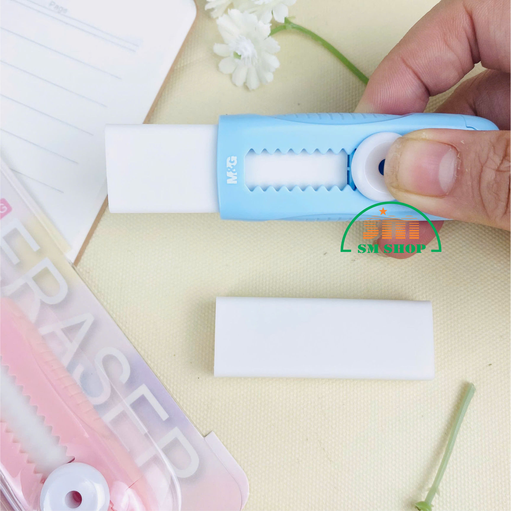 Vỏ gôm được thiết kế như hình chiếc dao rọc giấy lạ mắt, giúp giữ vệ sinh cho lõi gôm và tạo cảm giác cầm nắm tốt, chắc tay. Lõi gôm bên trong bằng cao su tự nhiên, dẻo dai, có độ đàn hồi tốt, có khả năng tẩy sạch tốt.