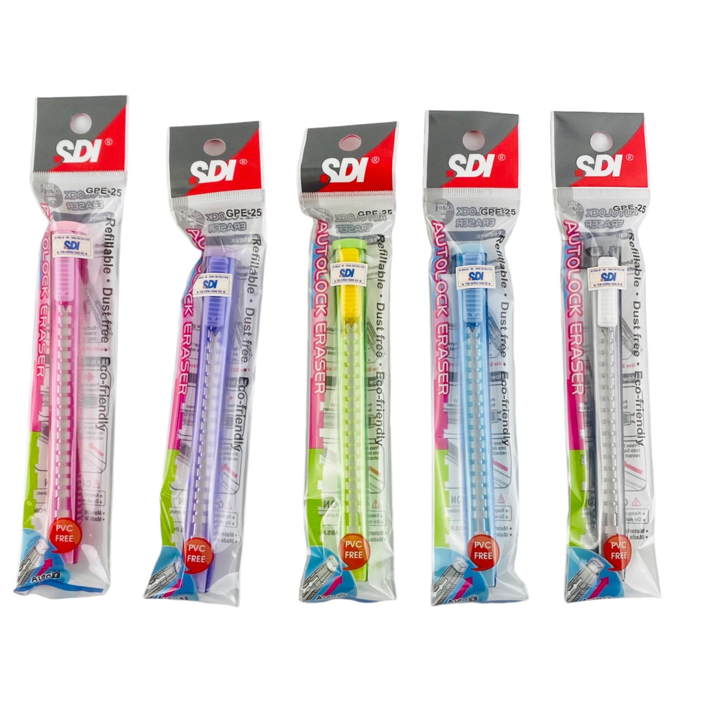 Được làm bằng PVC không độc hại, an toàn cho người sử dụng. Sản phẩm bao gồm: 1 bút tẩy và 1 lõi tẩy vuôg thay thế.
