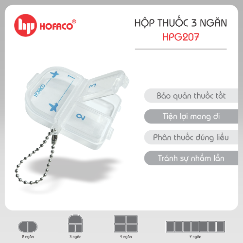 Sản phẩm với nhiều ngăn và ngăn nhỏ linh hoạt, giúp dễ dàng phân loại và xếp thuốc, tiết kiệm thời gian tìm kiếm. Với chất liệu bền bỉ và khả năng chắn chặn ánh sáng mặt trời và ẩm ướt, hộp đựng thuốc Hofaco giữ cho thuốc luôn nguyên vẹn và không bị hư hỏng. Đồng thời, hộp có thiết kế nhỏ gọn và dễ dàng mang theo và sử dụng khi cần.