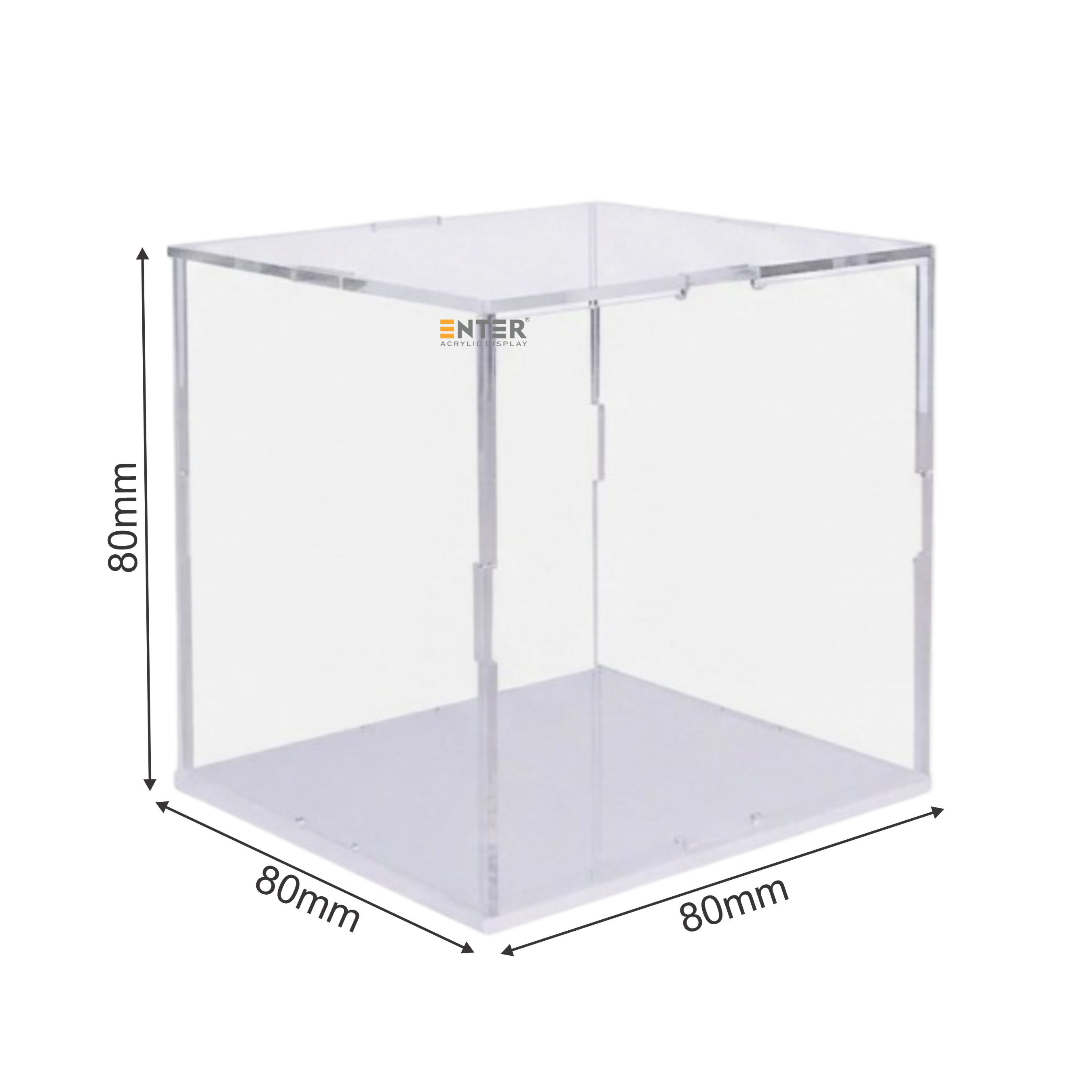 Hộp mica Enter BOX301 80x80x80mm dày 2mm đế 3mm, lắp ráp, Hộp trưng bày mô hình, Hộp mica trong chống bụi