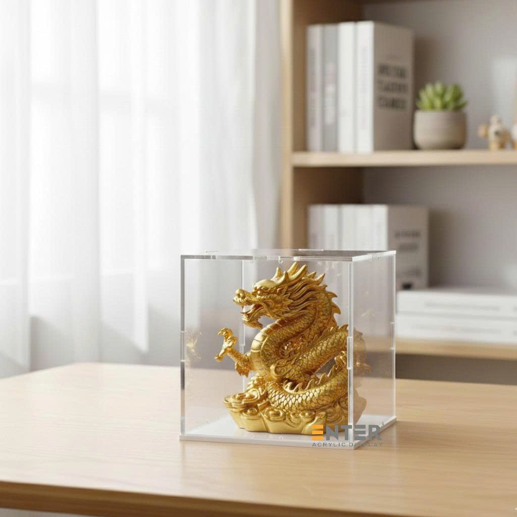 Hộp mica Enter BOX302 100x100x100mm dày 2mm đế 3mm, lắp ráp, Hộp trưng bày mô hình, Hộp mica trong chống bụi