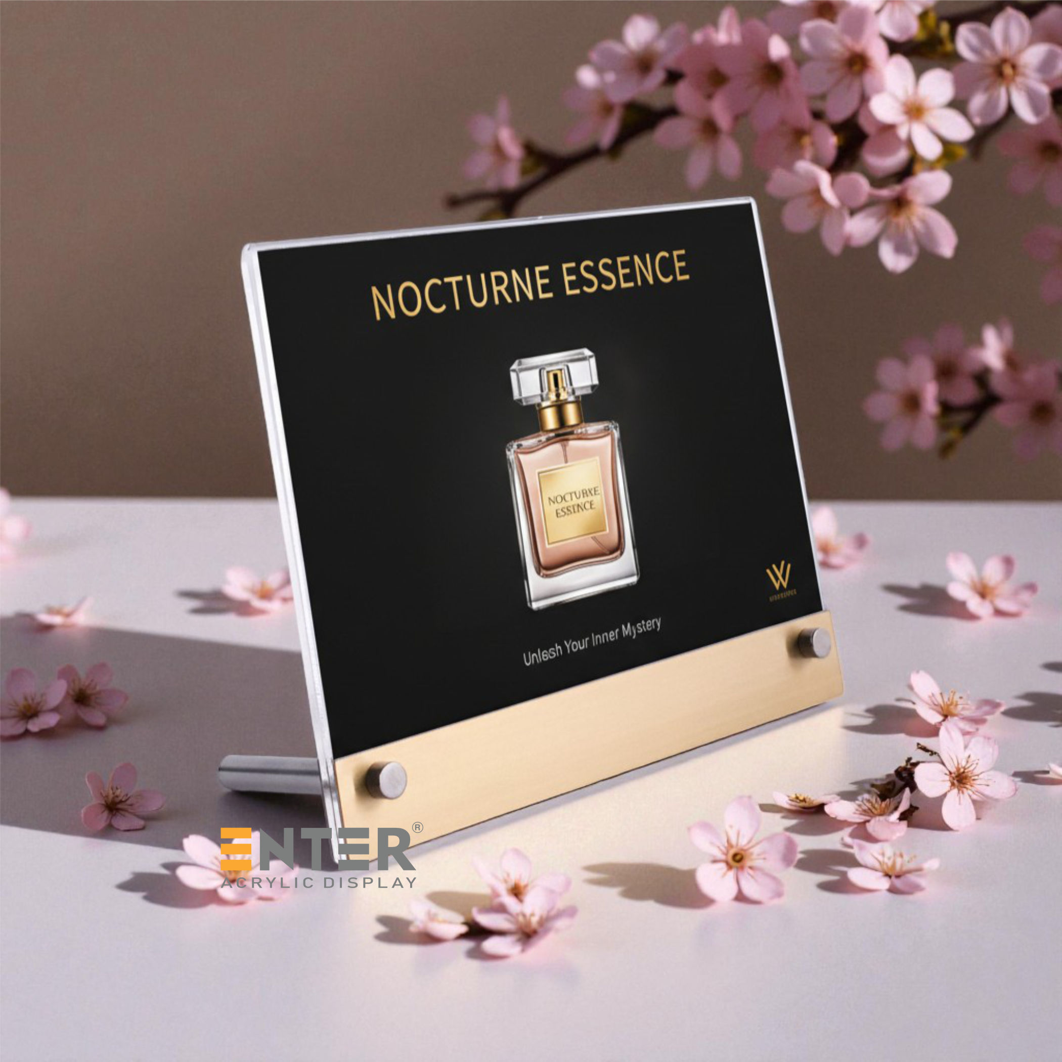Kệ mica 1 mặt Enter liên kết bulon để bàn là sản phẩm làm từ Mica Đài Loan, điểm nhấn nổi bật là đường viền kim loại màu vàng sang trọng, tạo nét thẩm mỹ hiện đại và thu hút, thích hợp dùng để tranh ảnh, bằng khen, catalog quảng cáo... sản phẩm này còn được dùng như một standee để bàn quảng cáo sản phẩm một cách ấn tượng nhất.