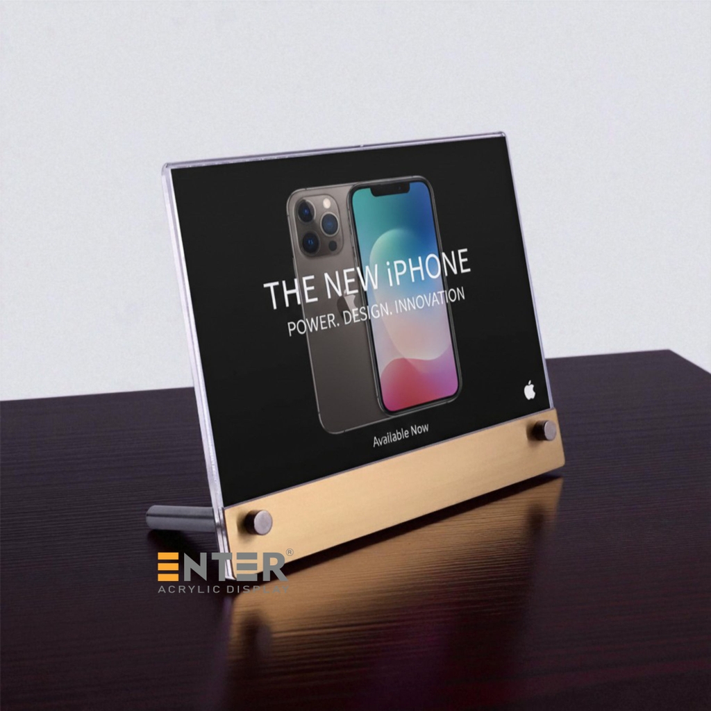 Kệ mica 1 mặt Enter để bàn là sản phẩm làm từ Mica Đài Loan, có công dụng trưng bày thực đơn, hiển thị giá cả sản phẩm tại các nhà hàng, khách sạn... sản phẩm này còn được dùng như một standee để bàn quảng cáo sản phẩm một cách ấn tượng nhất.