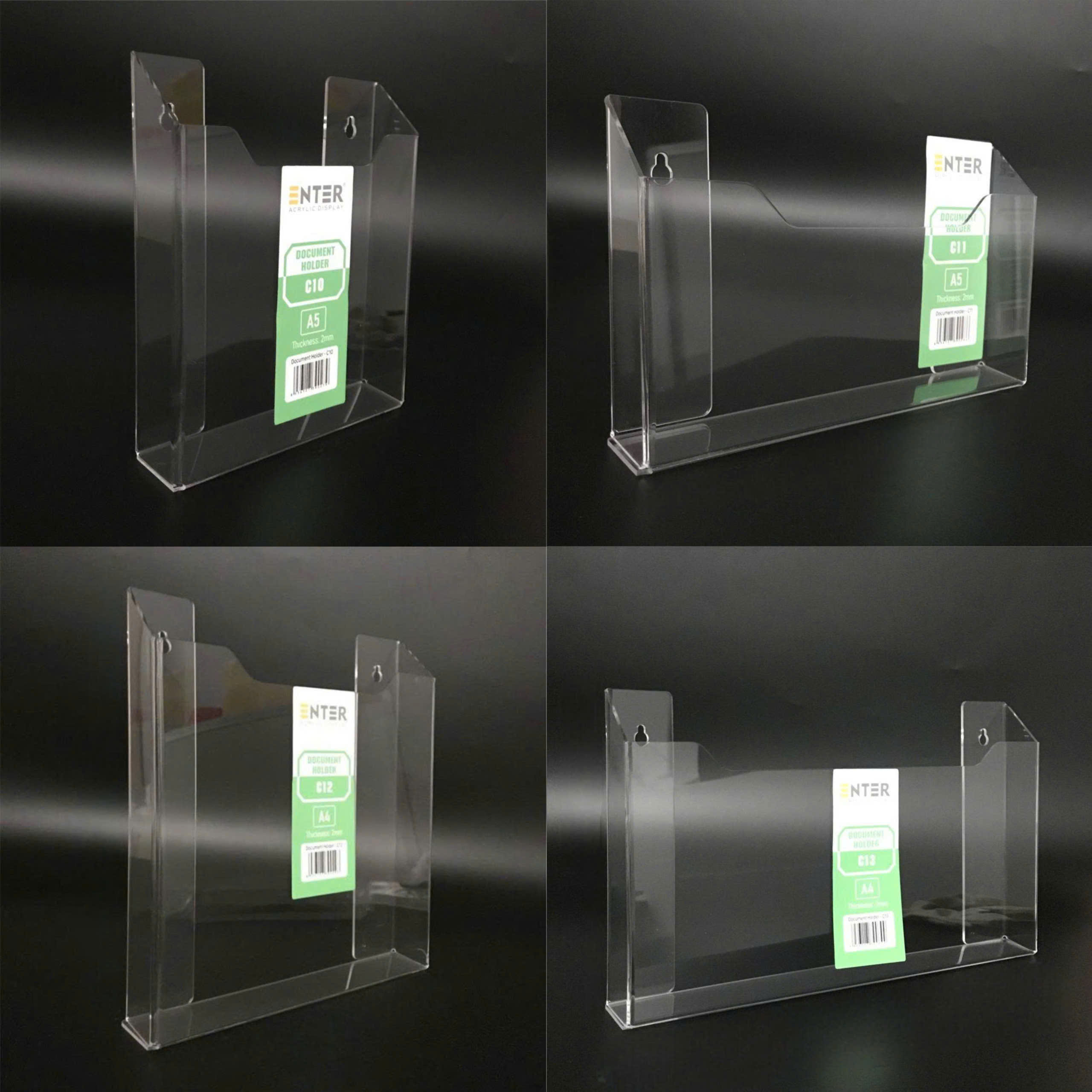 Kệ mica nhiều giấy treo tường Enter để bàn là sản phẩm làm từ Mica Đài Loan, được thiết kế để trưng bày các sản phẩm, đồ trang trí, sách, hình ảnh, hoặc các tờ checklist, tờ rơi cần lấy ra thường xuyên. Chúng giúp tạo ra một góc trưng bày ấn tượng và góp phần tăng cường sự hấp dẫn của không gian.
