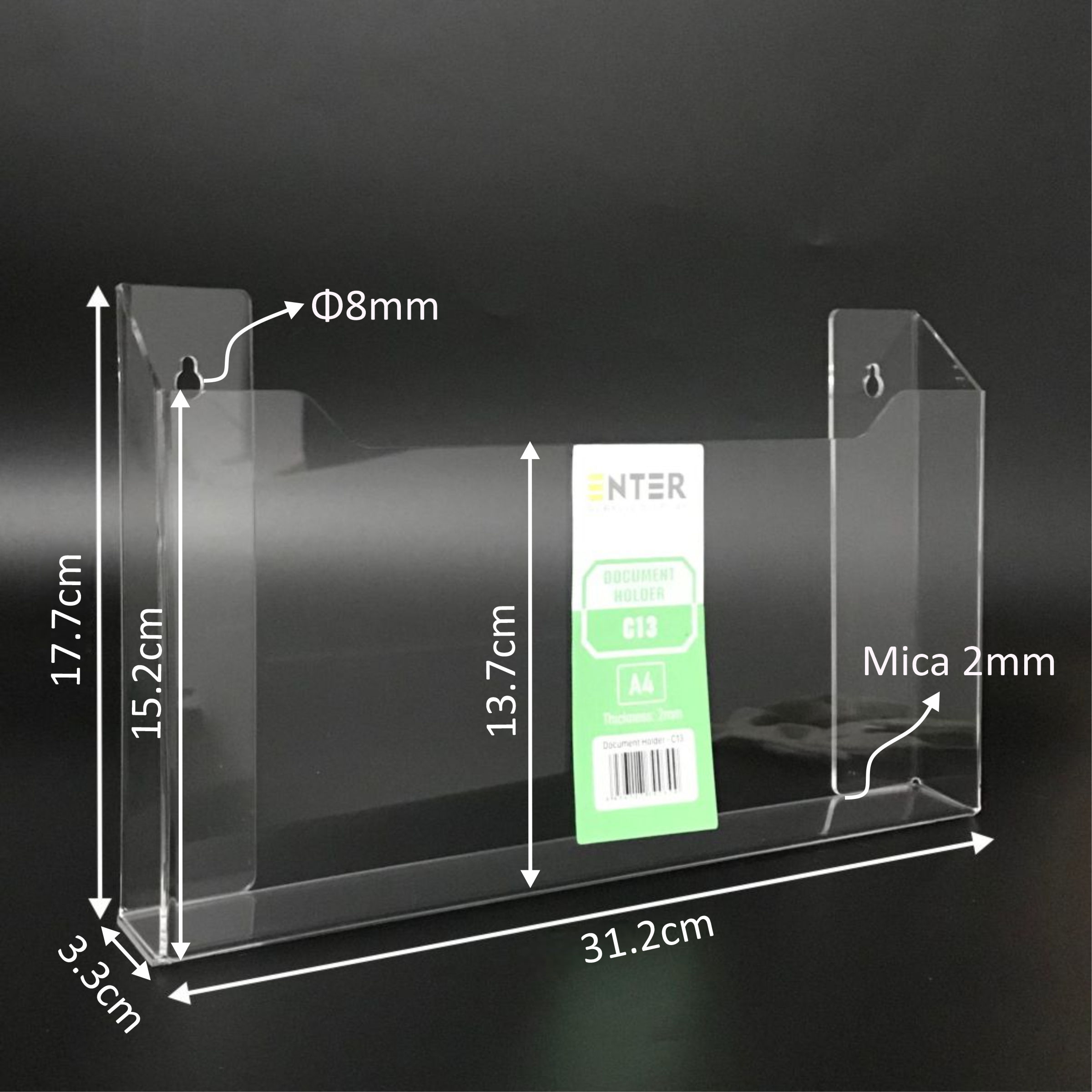 Kệ mica nhiều giấy treo tường Enter để bàn là sản phẩm làm từ Mica Đài Loan, được thiết kế để trưng bày các sản phẩm, đồ trang trí, sách, hình ảnh, hoặc các tờ checklist, tờ rơi cần lấy ra thường xuyên. Chúng giúp tạo ra một góc trưng bày ấn tượng và góp phần tăng cường sự hấp dẫn của không gian.