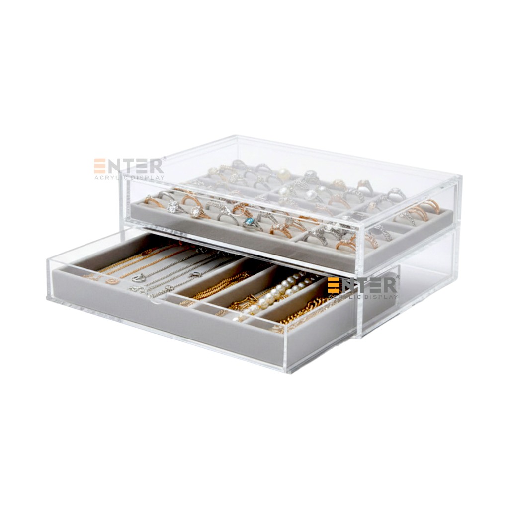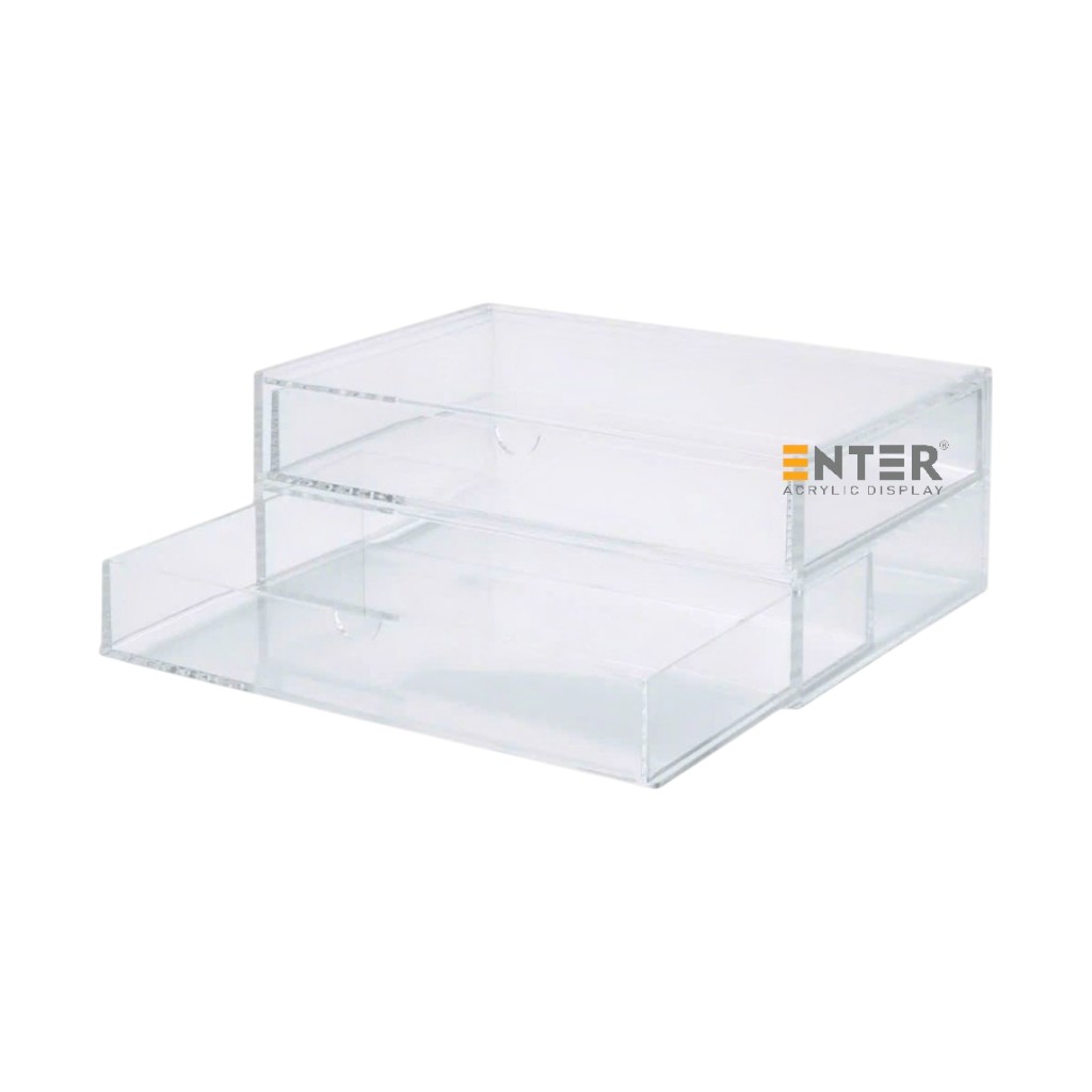 Kệ trưng bày mica Enter TB702 2 ngăn cửa kéo giúp sắp xếp và trưng bày các vật dụng nhỏ một cách gọn gàng, thẩm mỹ. Với thiết kế 2 tầng và cửa kéo tiện lợi, kệ phù hợp để trưng bày mỹ phẩm, phụ kiện, đồ lưu niệm, đồ handmade, đồ chơi mini... tại cửa hàng hoặc ngay trong không gian sống cá nhân. Nhờ chất liệu mica trong suốt, sản phẩm được hiển thị rõ ràng, dễ thu hút ánh nhìn, hỗ trợ tốt cho hoạt động quảng bá, bán hàng cũng như tạo điểm nhấn trang trí tinh tế cho bàn làm việc, bàn trang điểm hoặc kệ sách tại nhà.