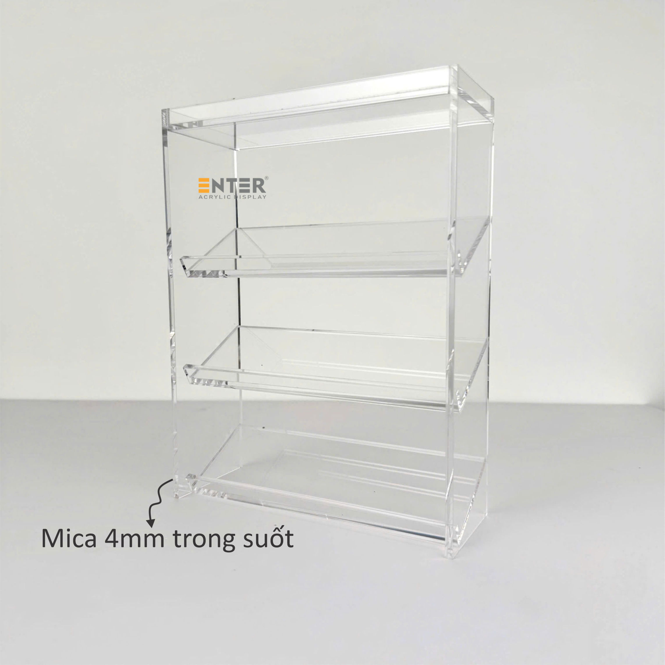 Kệ trưng bày mica Enter TB801 175x65x230mm 4 tầng giúp sắp xếp và trưng bày các vật dụng nhỏ một cách gọn gàng, thẩm mỹ. Với thiết kế 4 tầng tiện lợi, kệ phù hợp để trưng bày mỹ phẩm, phụ kiện, đồ lưu niệm, đồ handmade, đồ chơi mini... tại cửa hàng hoặc ngay trong không gian sống cá nhân. Nhờ chất liệu mica trong suốt, sản phẩm được hiển thị rõ ràng, dễ thu hút ánh nhìn, hỗ trợ tốt cho hoạt động quảng bá, bán hàng cũng như tạo điểm nhấn trang trí tinh tế cho bàn làm việc, bàn trang điểm hoặc kệ sách tại nhà.