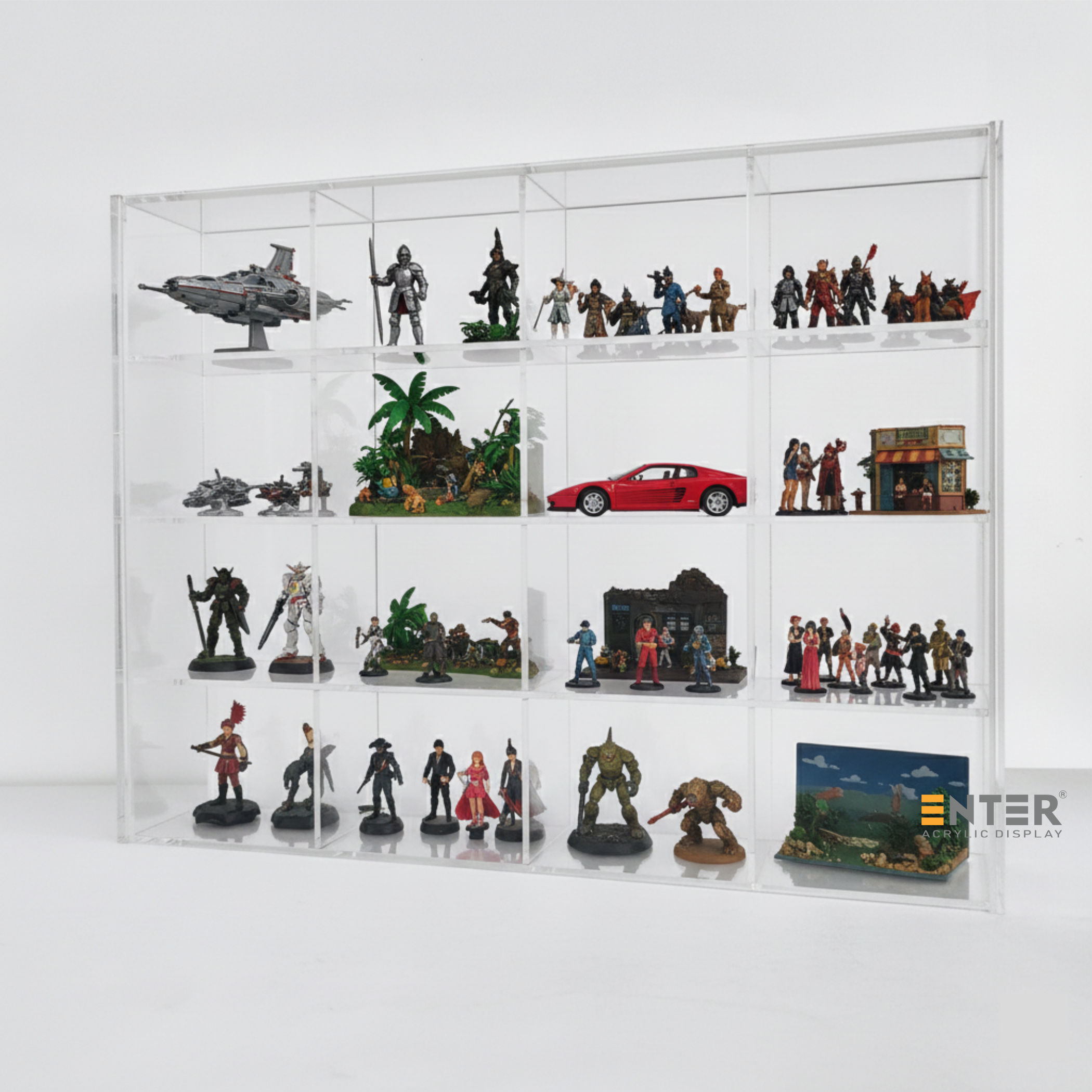 Kệ trưng bày mica Enter TB802 275x70x350mm 16 ô sở hữu thiết kế tối giản nhưng hiện đại, dễ dàng hòa hợp với nhiều không gian nội thất khác nhau. Kệ được làm hoàn toàn từ mica trong suốt cao cấp – bề mặt sáng bóng, không bị mờ đục hay nứt gãy theo thời gian, vừa bền bỉ vừa dễ lau chùi.