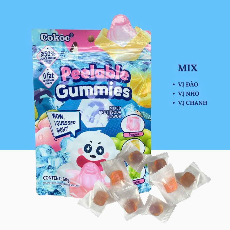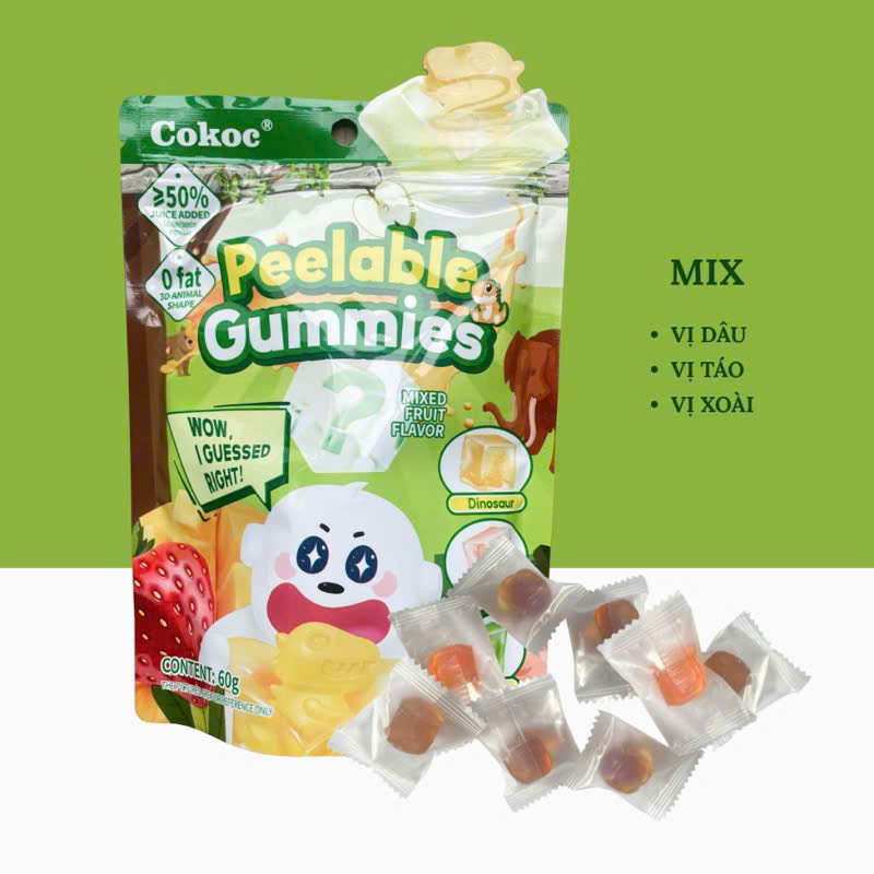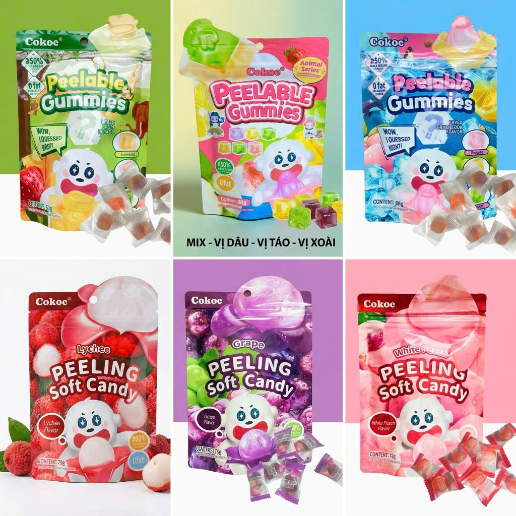 Kẹo dẻo Cokoc được làm từ đường, siro glucose và nước tinh khiết, kết hợp gelatin tạo độ dai mềm hấp dẫn, hòa quyện cùng hương trái cây và vị chua nhẹ từ axit citric; bổ sung màu và chất điều vị theo tiêu chuẩn an toàn, mang đến hương vị thơm ngon, dễ thưởng thức.