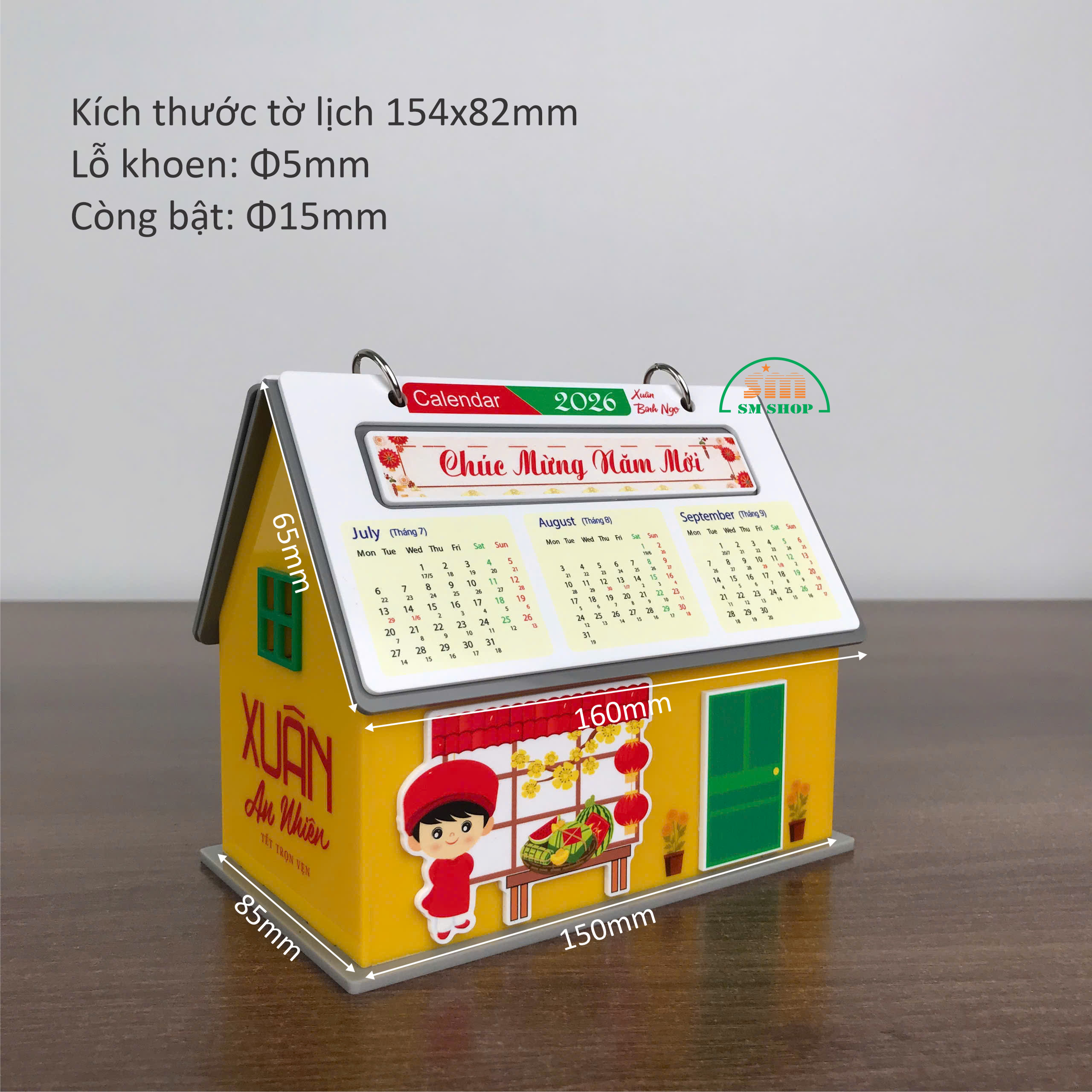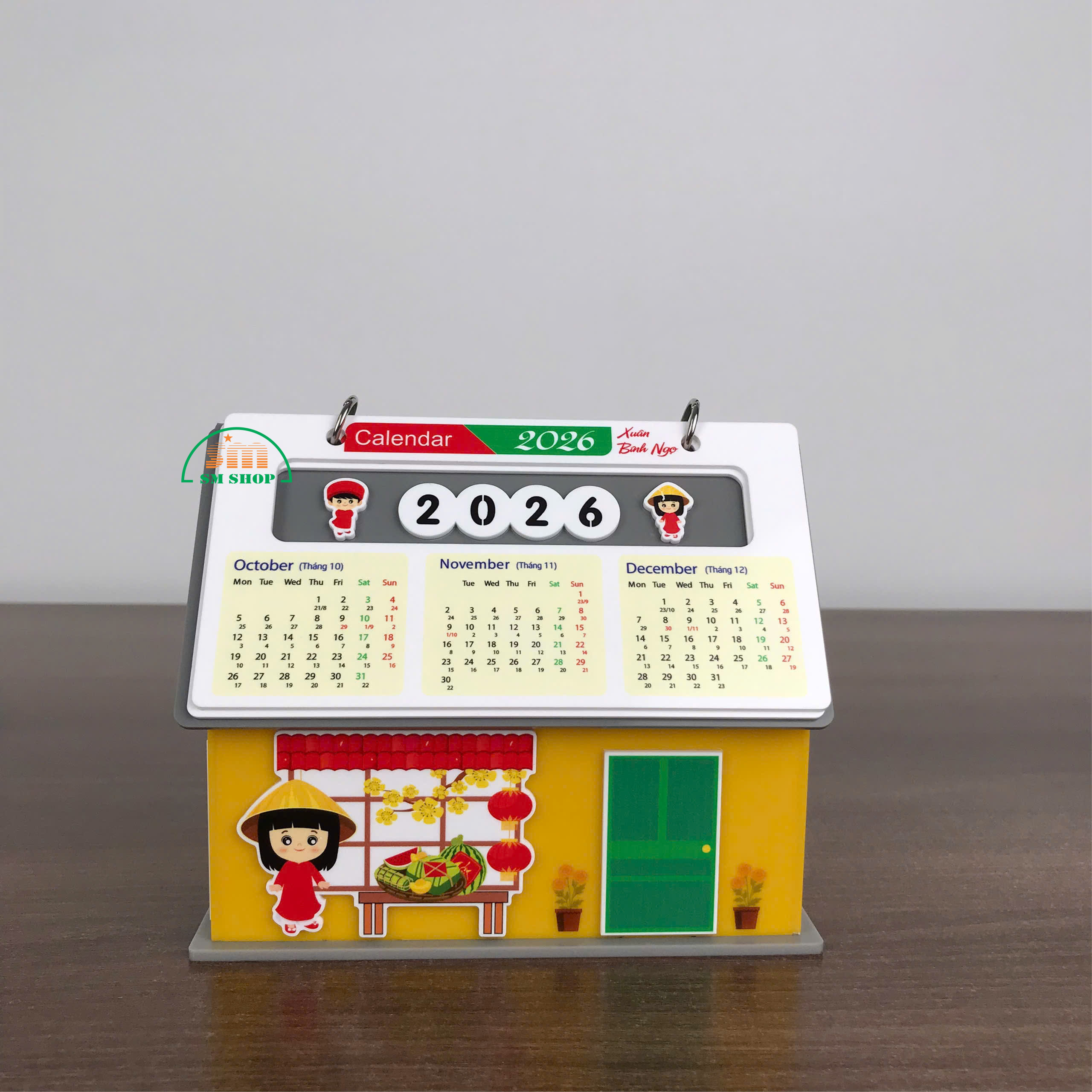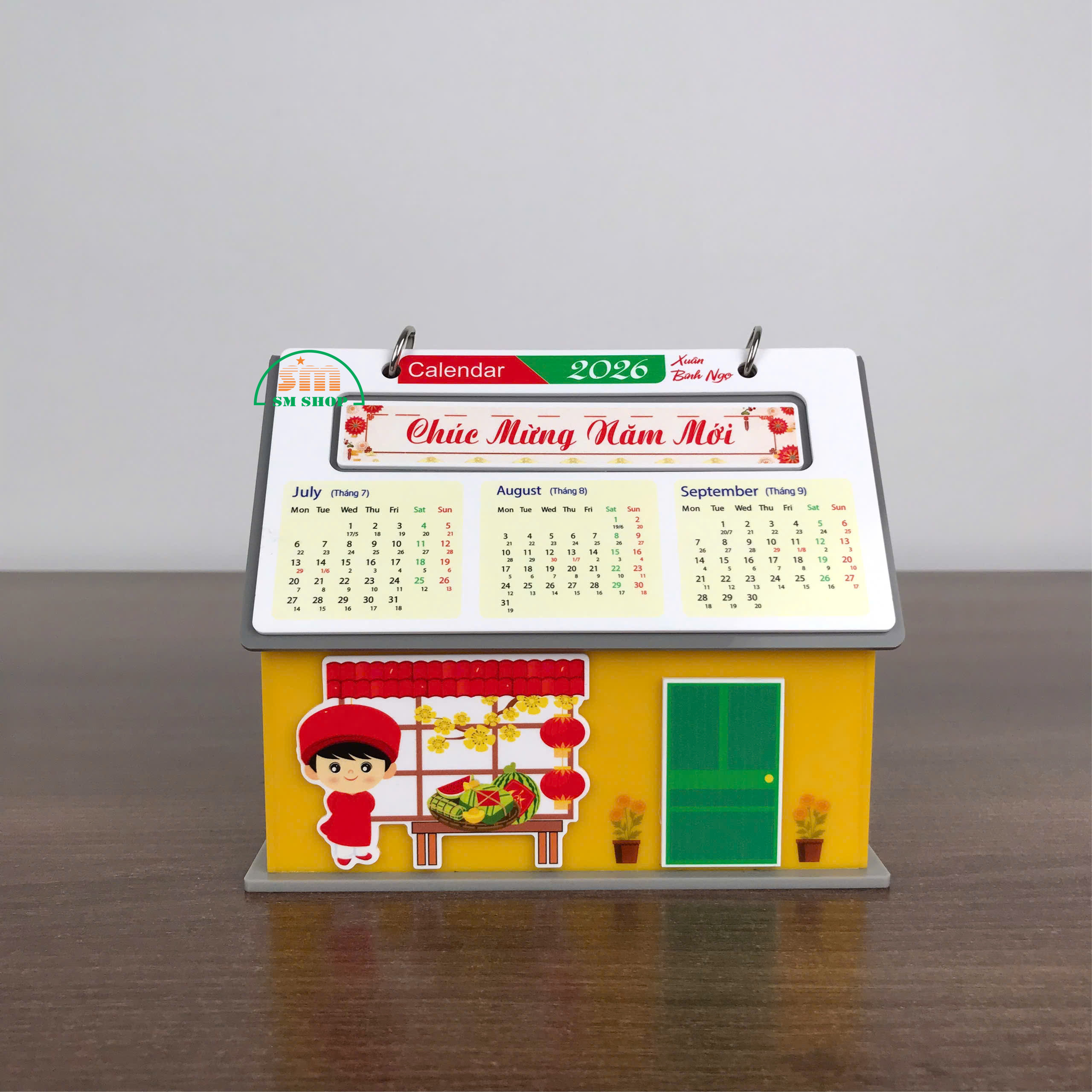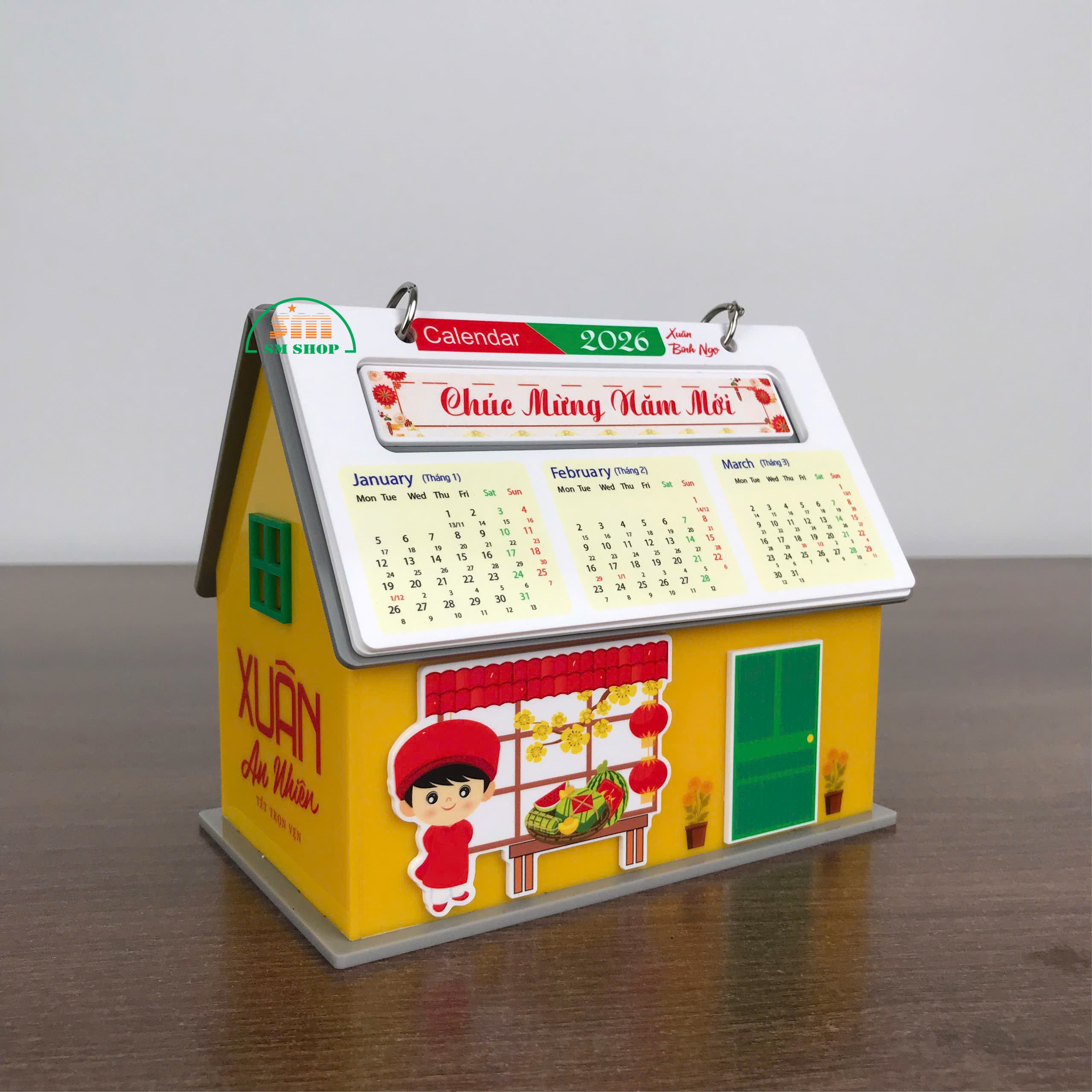 Sản phẩm lịch để bàn hình ngôi nhà không chỉ là vật trang trí xinh xắn, mang không khí Tết ấm áp, mà còn rất tiện ích với không gian bên trong rộng rãi, cho phép lưu trữ các văn phòng phẩm và đồ dùng học tập như kim bấm, bút viết, giấy note, giúp bàn làm việc hay góc học tập luôn gọn gàng, ngăn nắp. Thiết kế này kết hợp tính thẩm mỹ và công năng, biến sản phẩm thành món quà trang trí hữu dụng, vừa đẹp mắt vừa tiện lợi. Ngoài ra, sản phẩm còn phù hợp làm quà tặng, trang trí văn phòng, hoặc in logo, quảng bá thương hiệu, mang lại giá trị sử dụng và truyền thông hiệu quả.