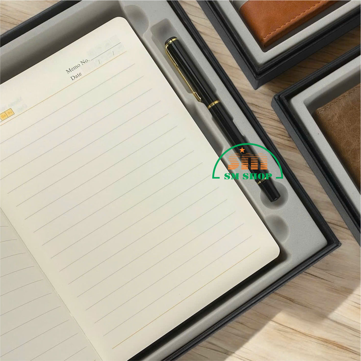 Hộp giấy cứng cao cấp, thân thiện với môi trườngSổ có bìa được làm từ chất liệu da PU cao cấp, có độ bền cao. Giấy sổ được làm từ giấy không bụi, mặt giấy láng mịn, có kẻ dòng, viết êm tay, đảm bảo sức khỏe cho người sử dụng.