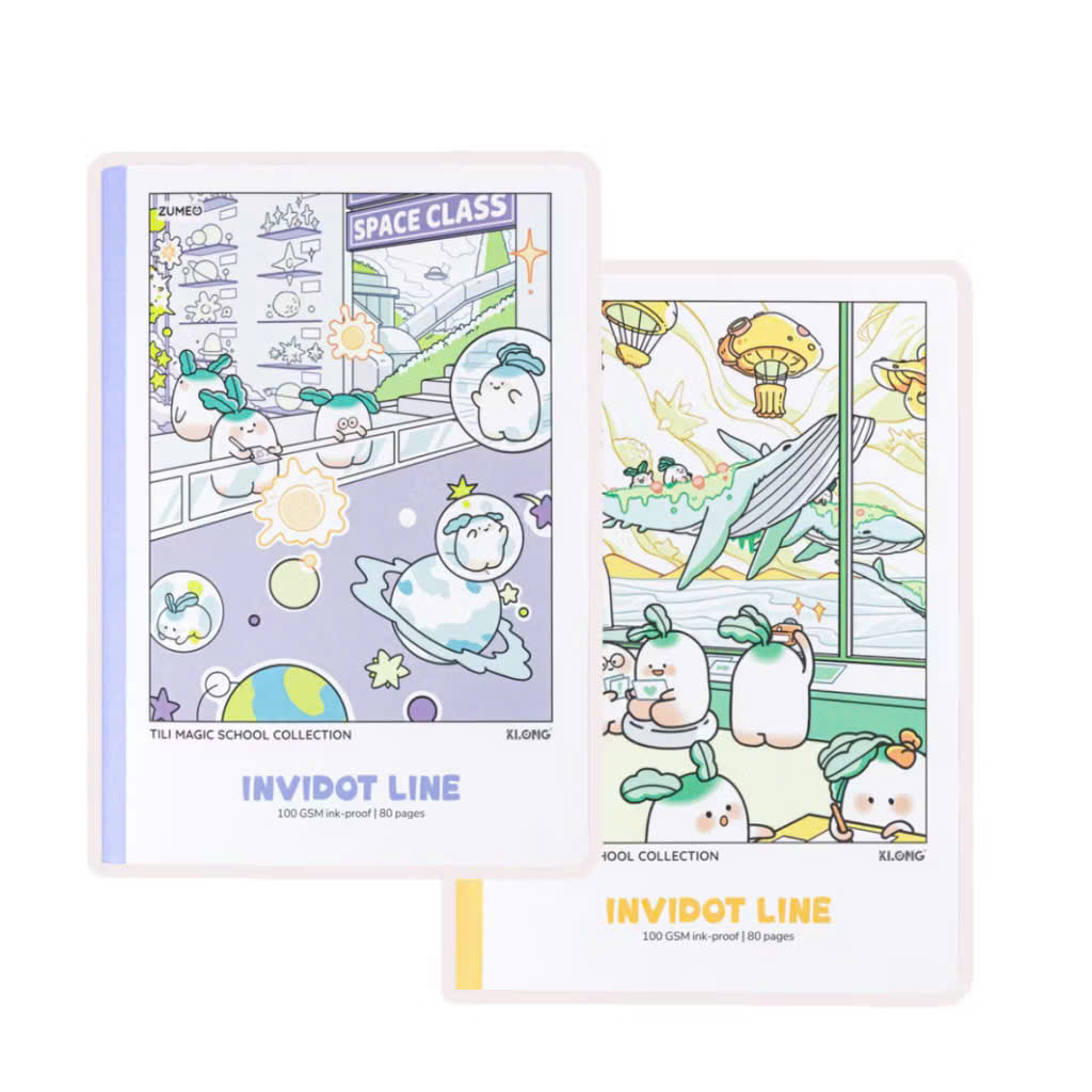 Sổ KLong 206 với bìa được in hình Tinh Linh Củ Cải dễ thương, sinh động, mang đến nguồn cảm hứng học tập tươi mới mỗi ngày. Item này còn sở hữu chất giấy 100GSM chống thấm nhòe hiệu quả cùng layout ruột InviDot Line kẻ ngang tích hợp các khoảng trống 0,3mm đóng vai trò như dấu chấm vô hình, giúp căn chỉnh dễ dàng khi cần kẻ bảng, vẽ hình. Được làm từ giấy không bụi, đảm bảo sức khỏe cho người sử dụng, mặt giấy láng mịn, viết êm tay, khô mực nhanh.