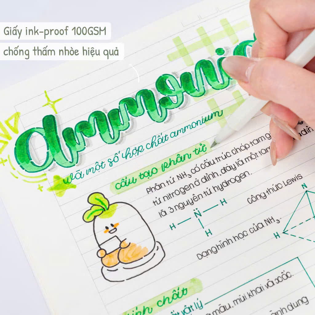 Sản phẩm không chỉ đáp ứng nhu cầu ghi chép hàng ngày cho học sinh, sinh viên, nhân viên văn phòng,... Với chất giấy 100GSM dày dặn cho phép thoải mái ghi chép sáng tạo với các loại bút gốc nước, bút gel, bút brush nhạt màu mà không lo mực bị in hằn sang trang sau. Chất giấy dày dặn và bề mặt giấy mịn đem lại trải nghiệm ghi chép êm tay, đi nét mượt mà có thể sử dụng làm vở luyện viết chữ.