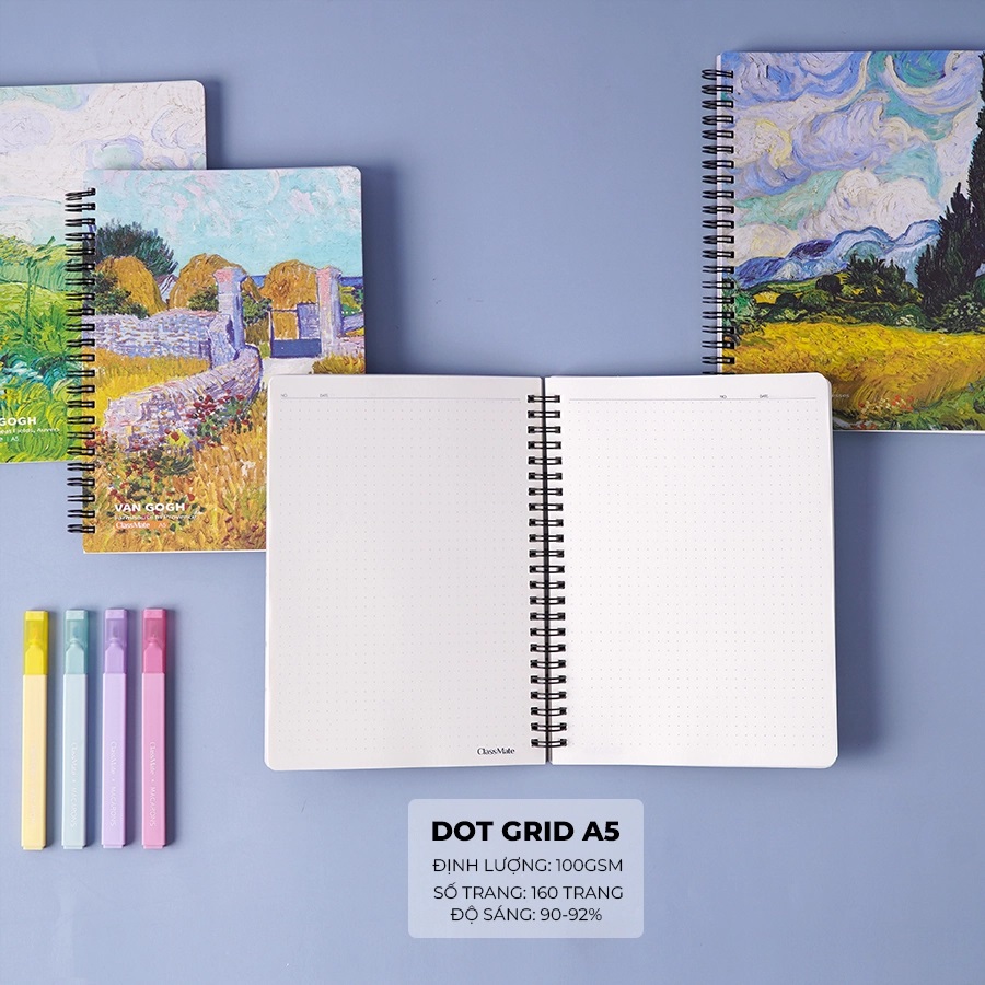 Sổ lò xo Classmate với thiết kế bìa sổ in hình hoạ tiết một bức tranh sáp dầu. Giấy sổ là loại giấy không bụi, mặt giấy láng mịn, viết êm tay, tạo nét chữ đẹp, vô cùng an toàn với sức khoẻ và thân thiện với môi trường.