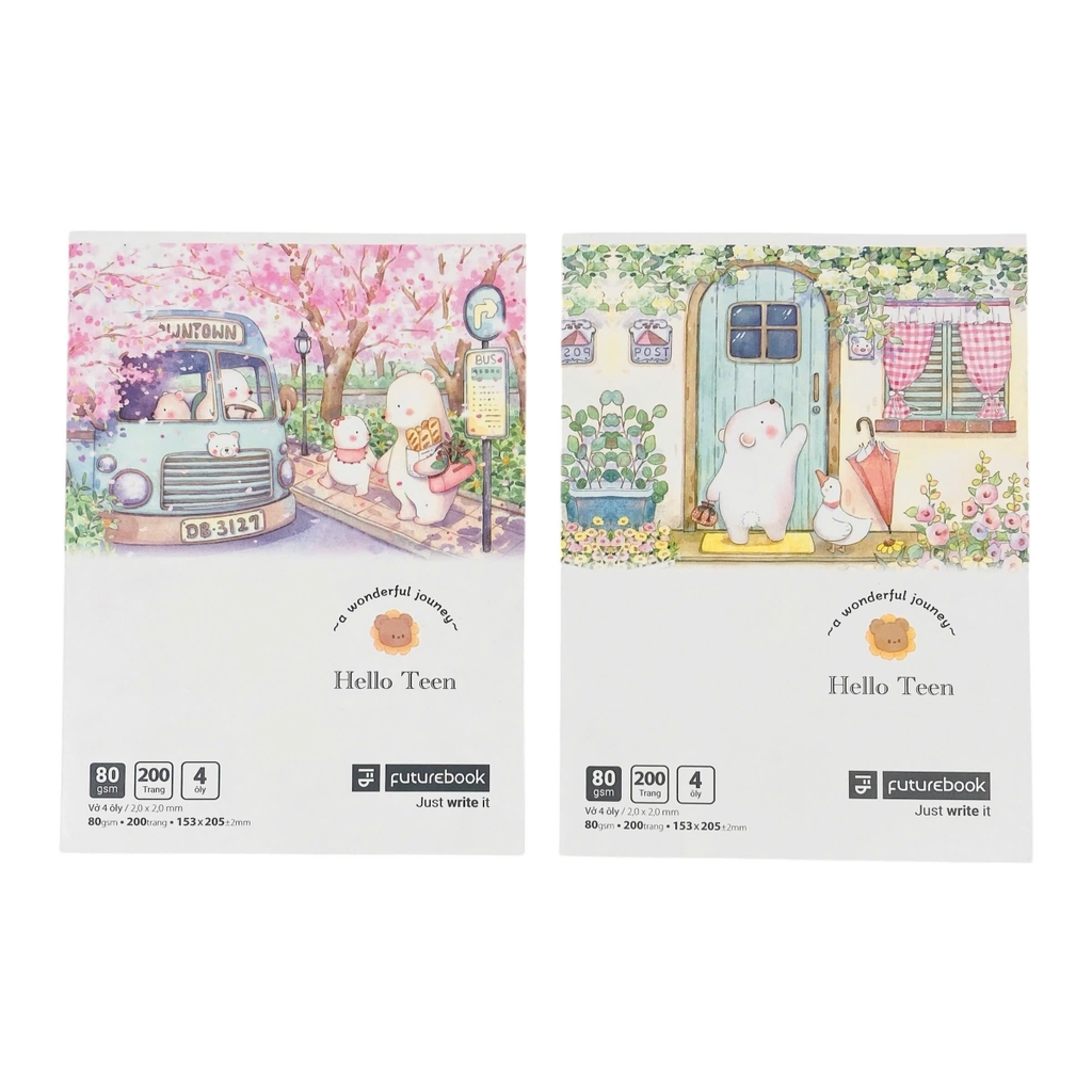 Tập Futurebook Hello Teen được làm từ giấy có độ trắng sáng, đường kẻ ô ly rõ ràng, mặt giấy láng mịn, viết êm tay, tạo nét chữ đẹp. Tập định lượng 80gsm chống thấm nhòe vừa đủ với các loại bút viết thông thường. Bìa vở được in sắc nét, cứng cáp, thiết kế hình ảnh ngộ nghĩnh, đáng yêu ấn tượng với các bé nhỏ. Tập được đóng gáy ghim chắc chắn, giúp các trang vở dễ dàng lật giở hơn.